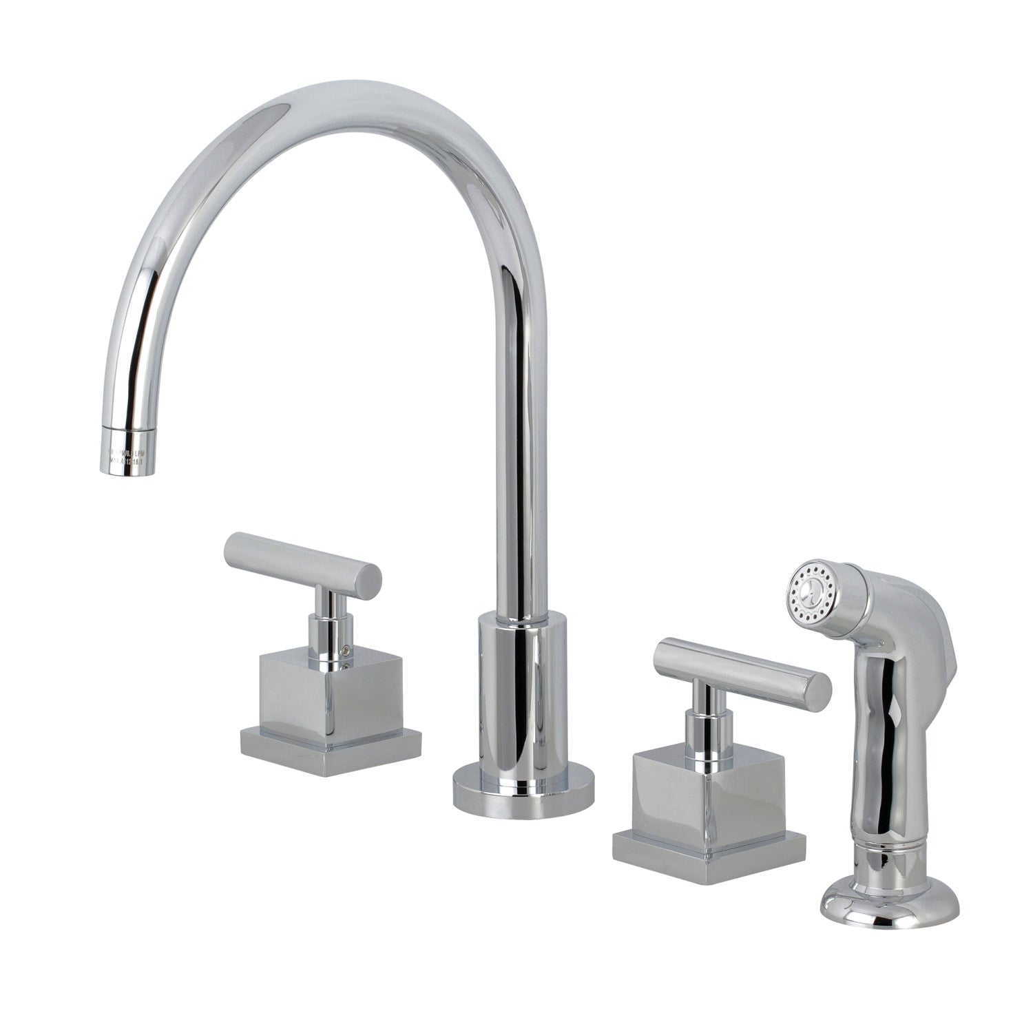 Claremont KS8721CQL Two-Handle 4-Hole Deck Mount Widespread Kitchen Faucet with Plastic Sprayer, Polished Chrome