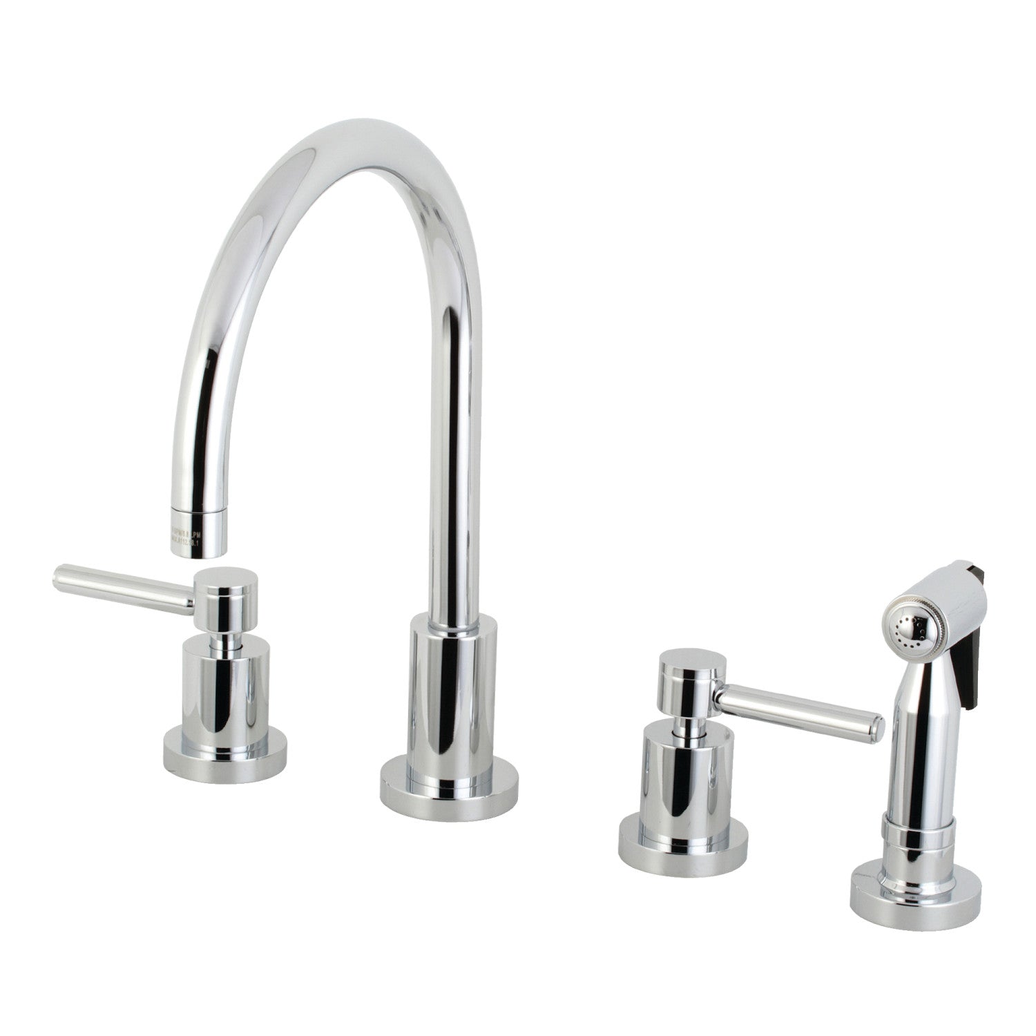 Concord KS8721DLBS Two-Handle 4-Hole Deck Mount Widespread Kitchen Faucet with Brass Sprayer, Polished Chrome