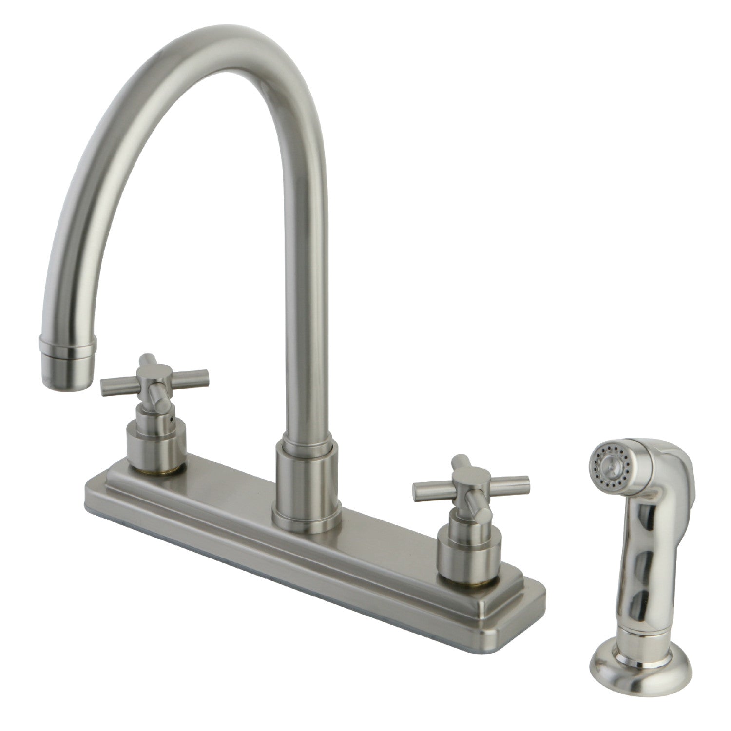 KS8798EX Two-Handle 4-Hole Deck Mount 8" Centerset Kitchen Faucet with Side Sprayer, Brushed Nickel