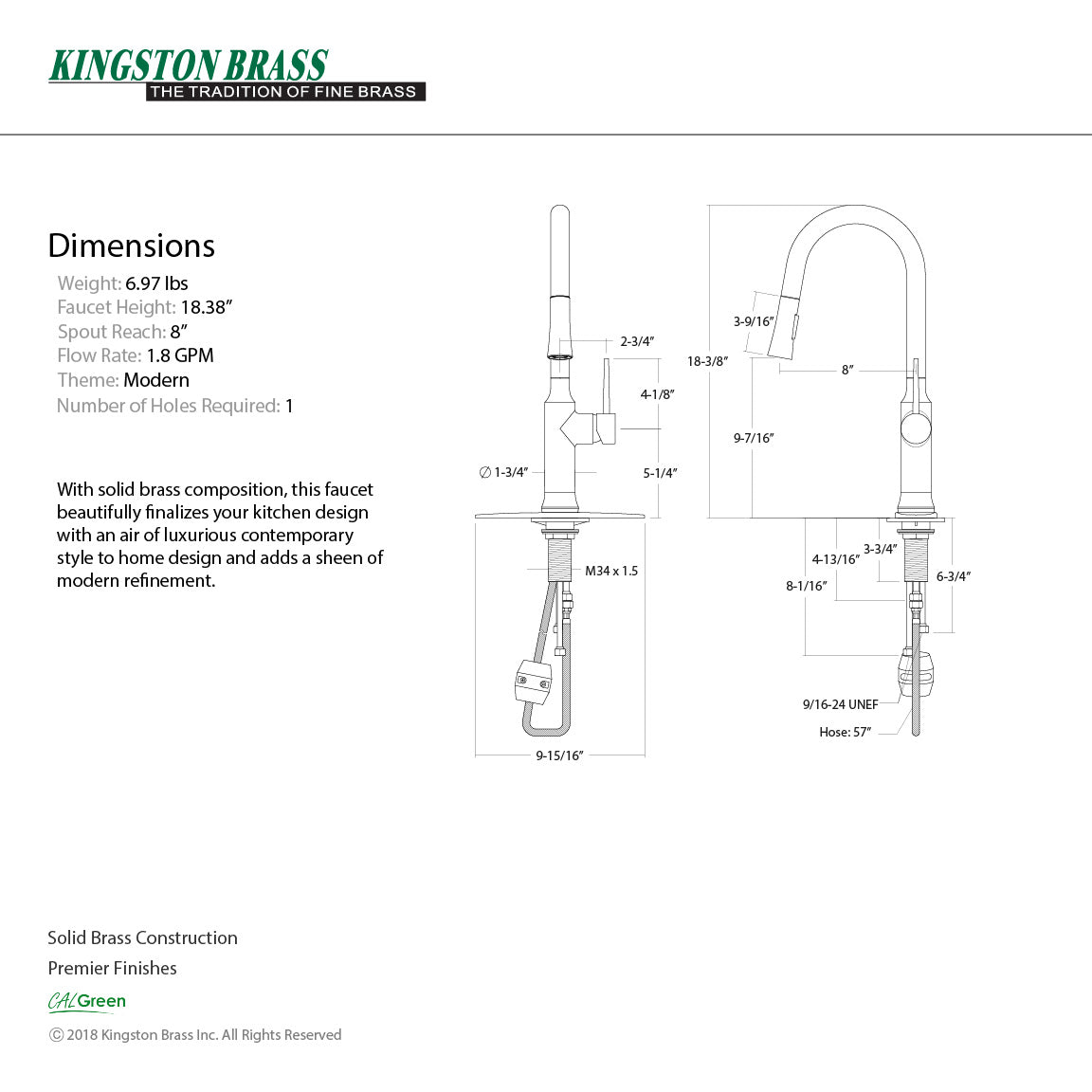 - 1.8 GPM/6.8 LPM spout flow rate at 60 PSI