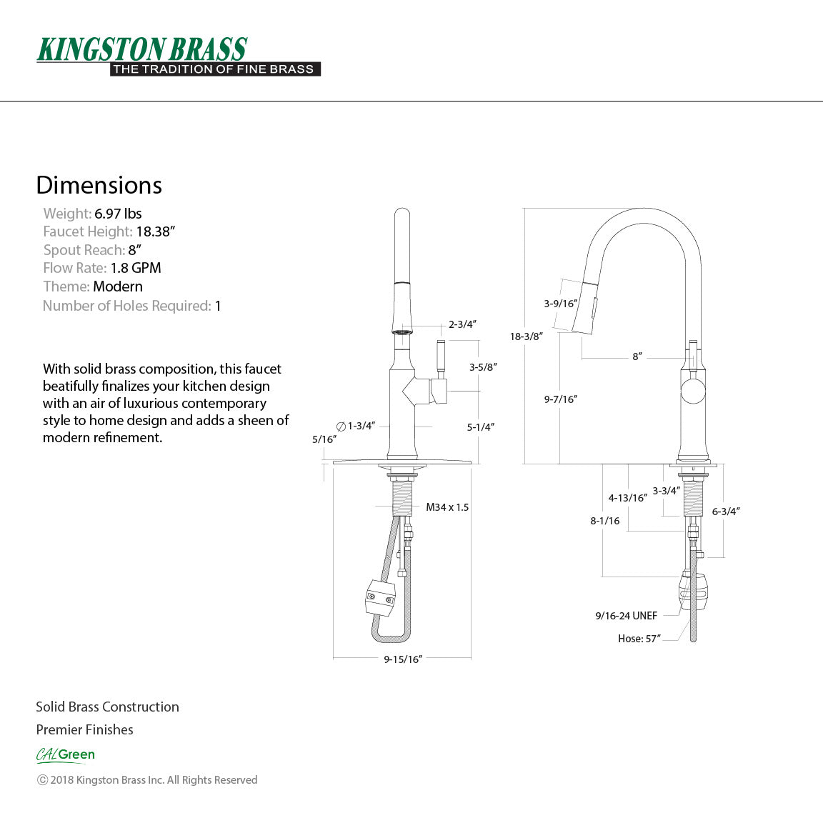 - 1.8 GPM/6.8 LPM spout flow rate at 60 PSI