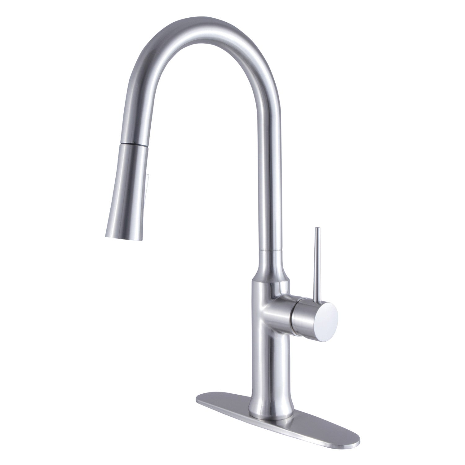 New York LS2728NYL Single-Handle 1-Hole Deck Mount Pull-Down Sprayer Kitchen Faucet, Brushed Nickel
