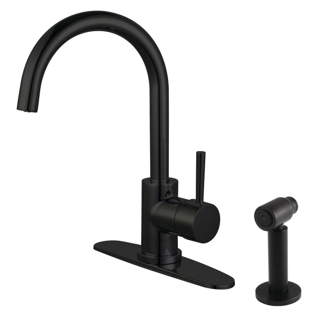 Concord LS8570DLBS Single-Handle Deck Mount Kitchen Faucet with Side Sprayer, Matte Black