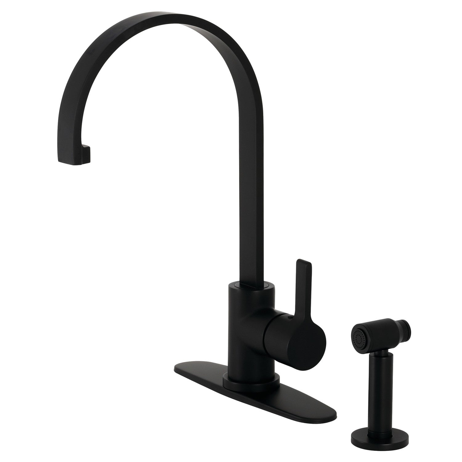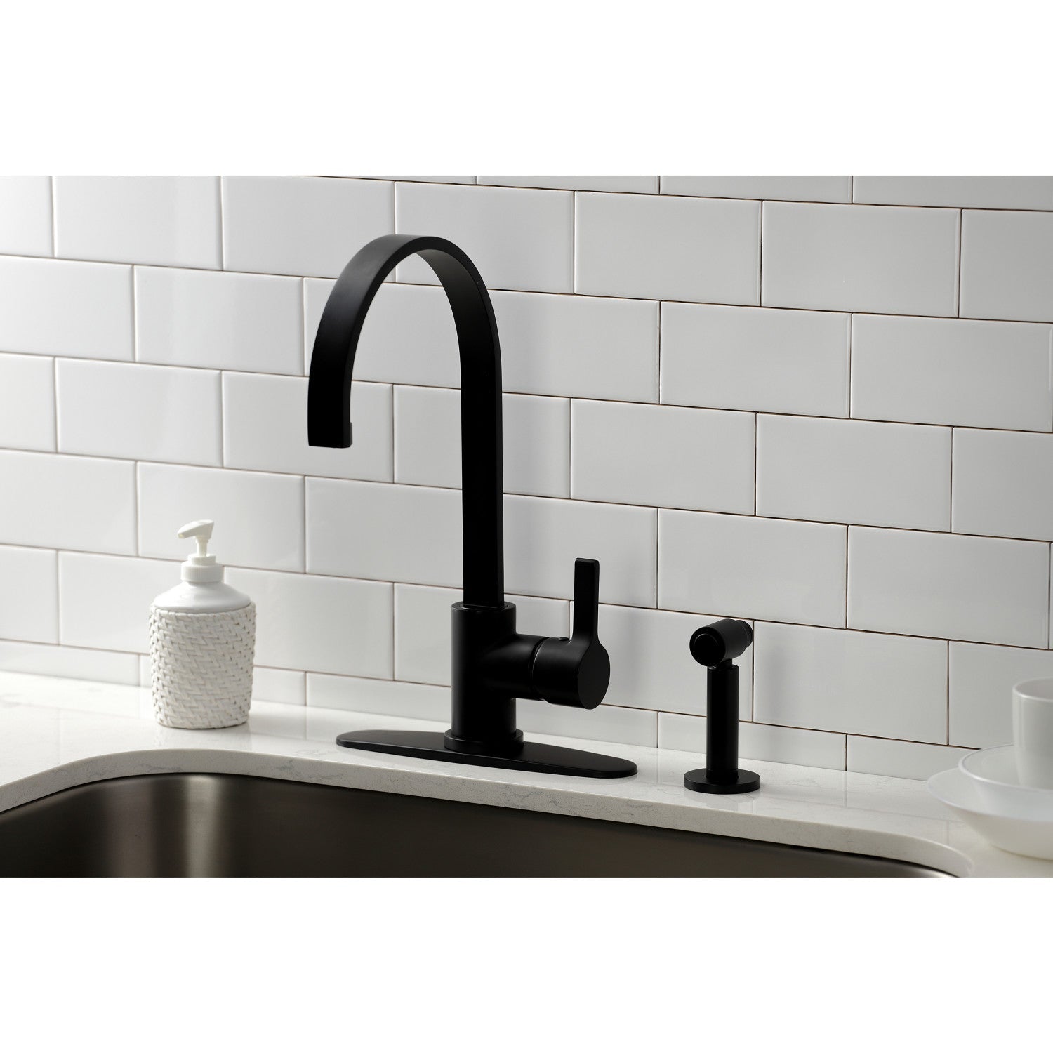 Transcend your home into a futuristic utopia with this faucet's brilliant craftsmanship and modern, curved spout with ergonomic levers. Easily adaptable to any kitchen, the Continental single-handle kitchen faucet Include brass sprayer is prized for its easy-to-use single handle. This makes it the perfect fixture for multitasking as you can adjust temperature and volume in one swipe. Enjoy the strong and durable brass material and matte black finish that will last for years to come. The included matching finish side-sprayer also adds convenience in cleaning hard-to-reach areas.