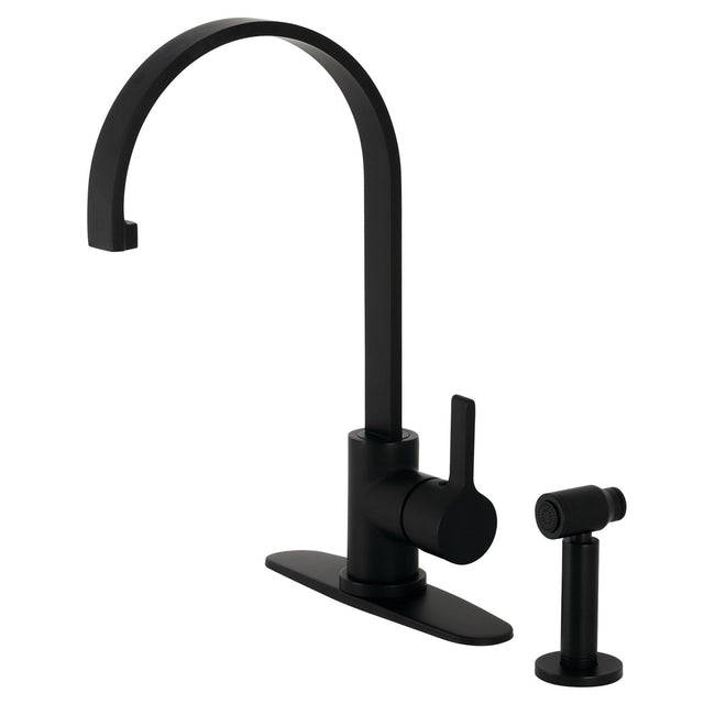 Continental LS8710CTLBS Single-Handle Deck Mount Kitchen Faucet with Brass Sprayer and Deck Plate, Matte Black