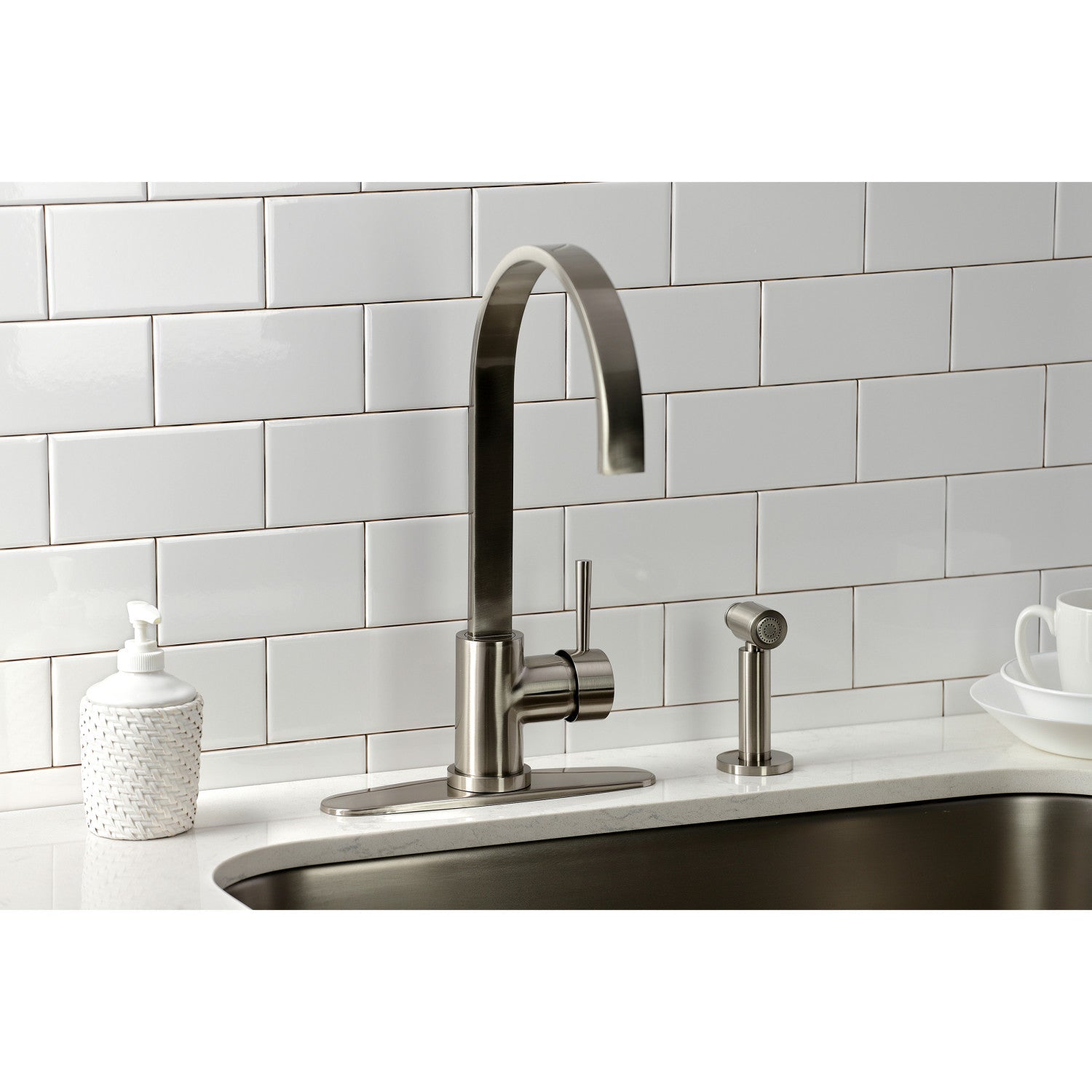 Concord LS8718DLBS Single-Handle Deck Mount Kitchen Faucet with Brass Sprayer and Deck Plate, Brushed Nickel