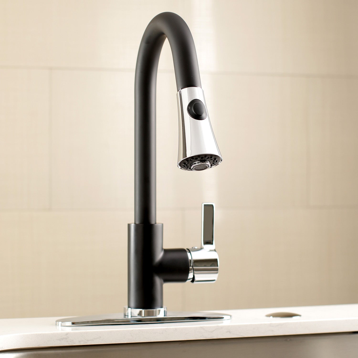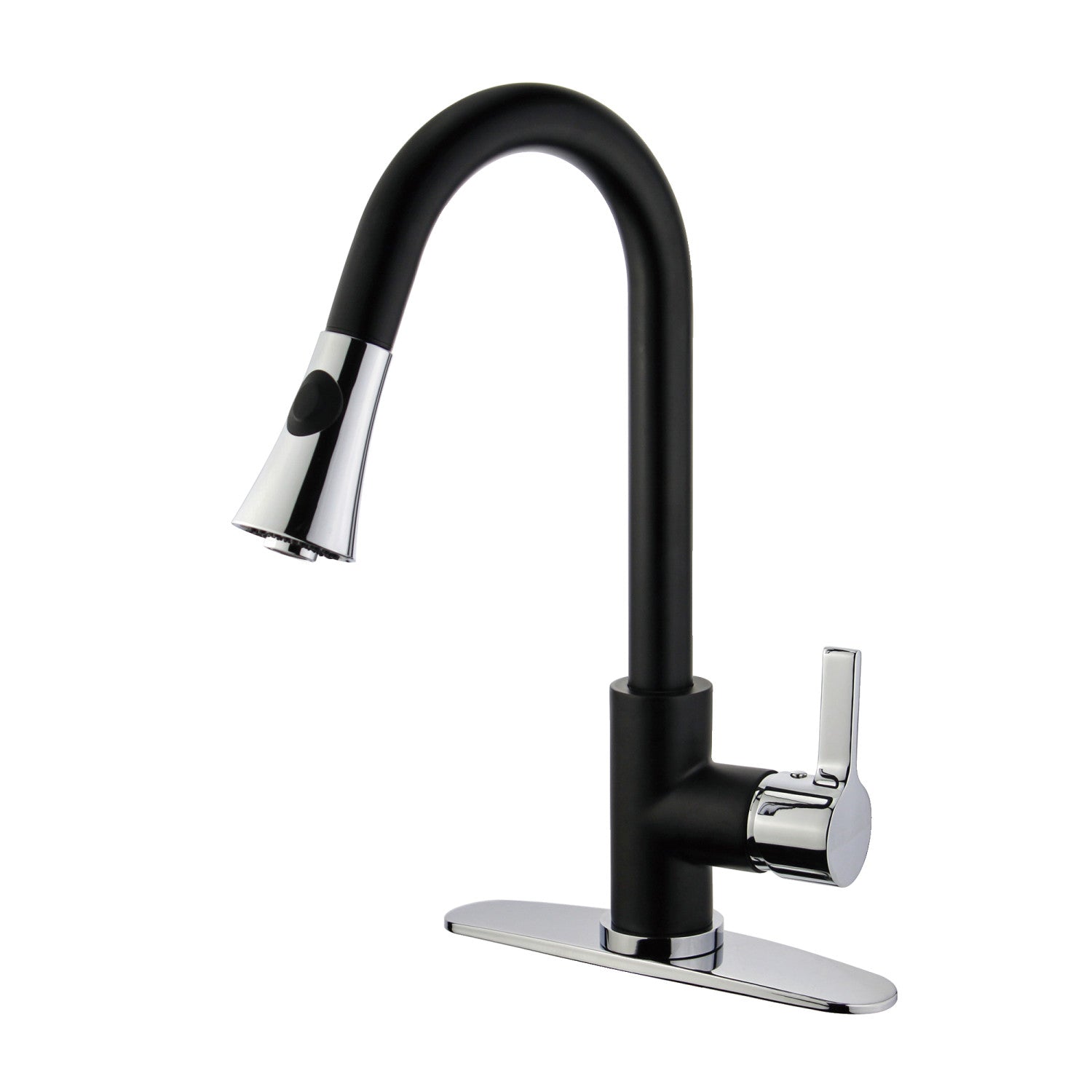 Continental LS8727CTL Single-Handle 1-Hole Deck Mount Pull-Down Sprayer Kitchen Faucet, Matte Black/Polished Chrome