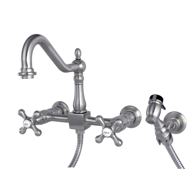 Kingston Brass KS1248AXBS Heritage Wall Mount Bridge Kitchen Faucet with Brass Spray, Brushed Nickel