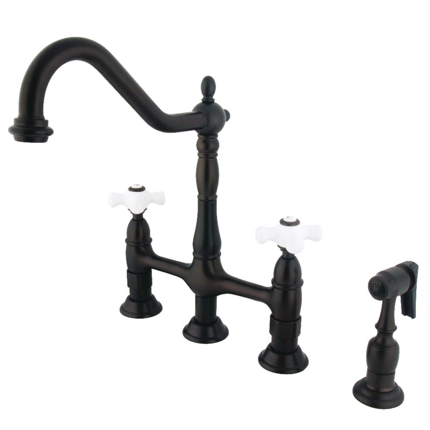 Kingston Brass KS1275PXBS Heritage Bridge Kitchen Faucet with Brass Sprayer, Oil Rubbed Bronze