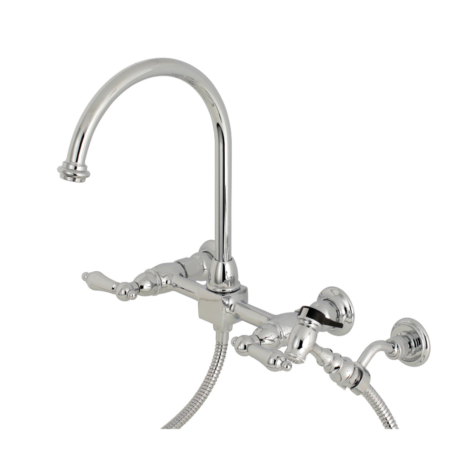 Kingston Brass KS1291ALBS Restoration Wall Mount Bridge Kitchen Faucet with Brass Sprayer, Polished Chrome