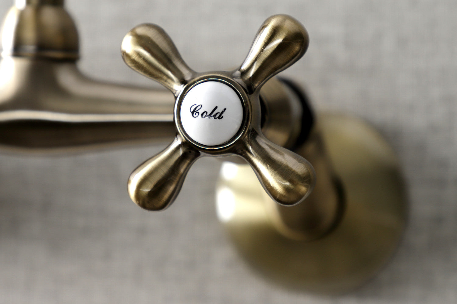 Kingston Brass KS213AB Kingston Two Handle Wall Mount Kitchen Faucet, Antique Brass