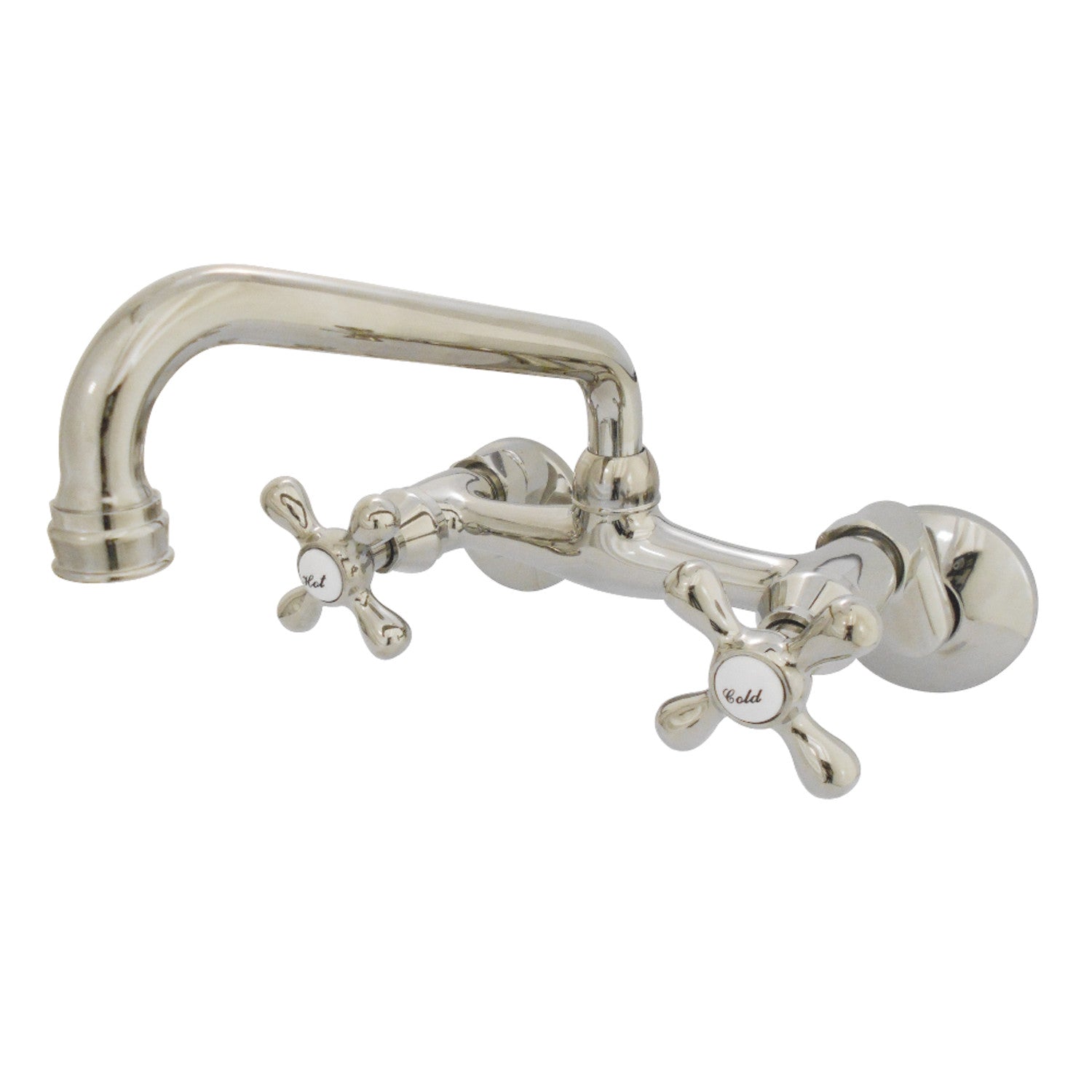 Kingston Brass KS213PN Kingston Two Handle Wall Mount Kitchen Faucet, Polished Nickel