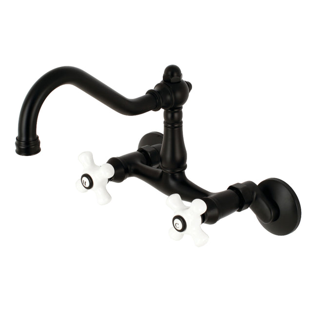 Kingston Brass KS3220PX Vintage 6" Adjustable Center Wall Mount Kitchen Faucet, Matte Black