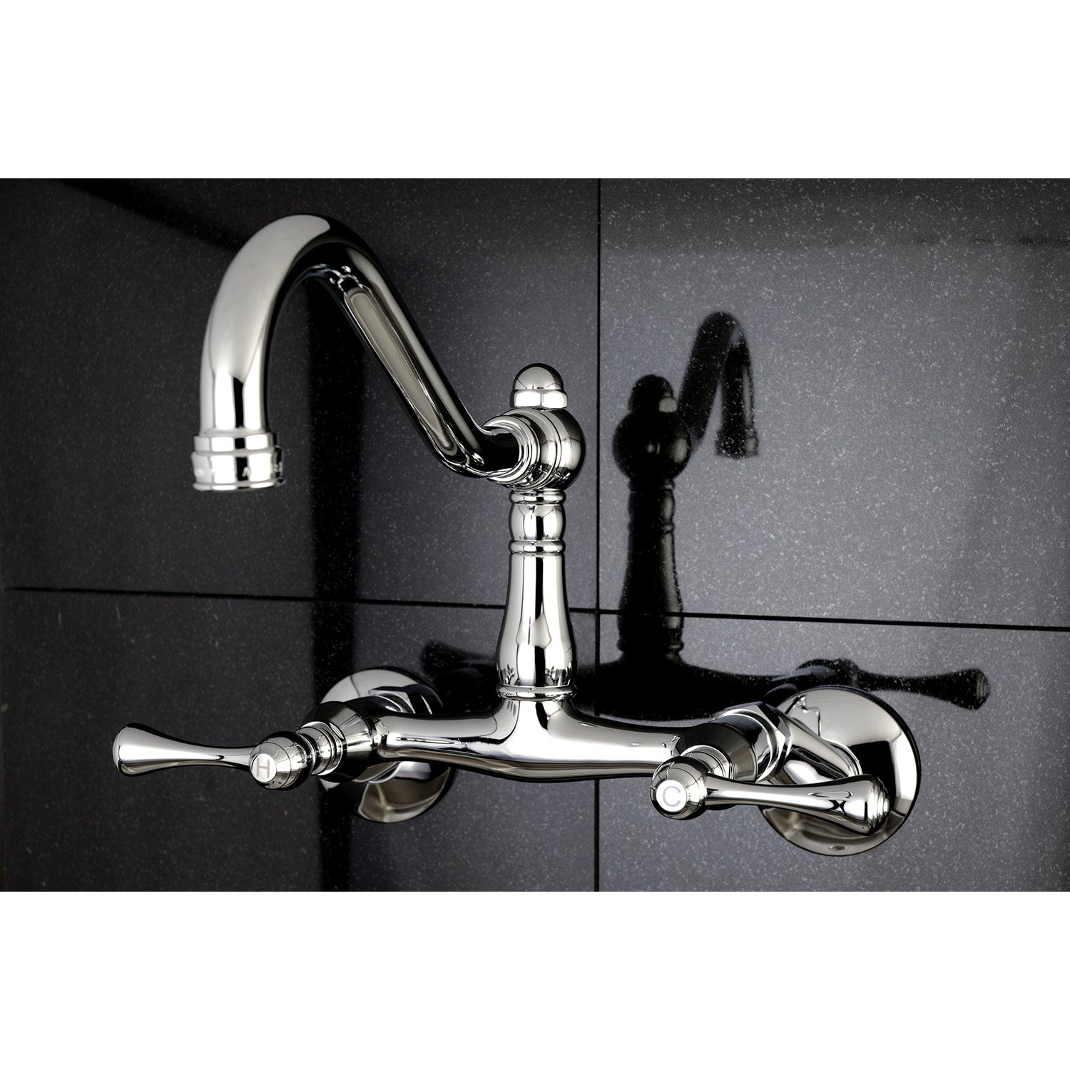 Kingston Brass KS3221BL Vintage 6" Adjustable Center Wall Mount Kitchen Faucet, Polished Chrome