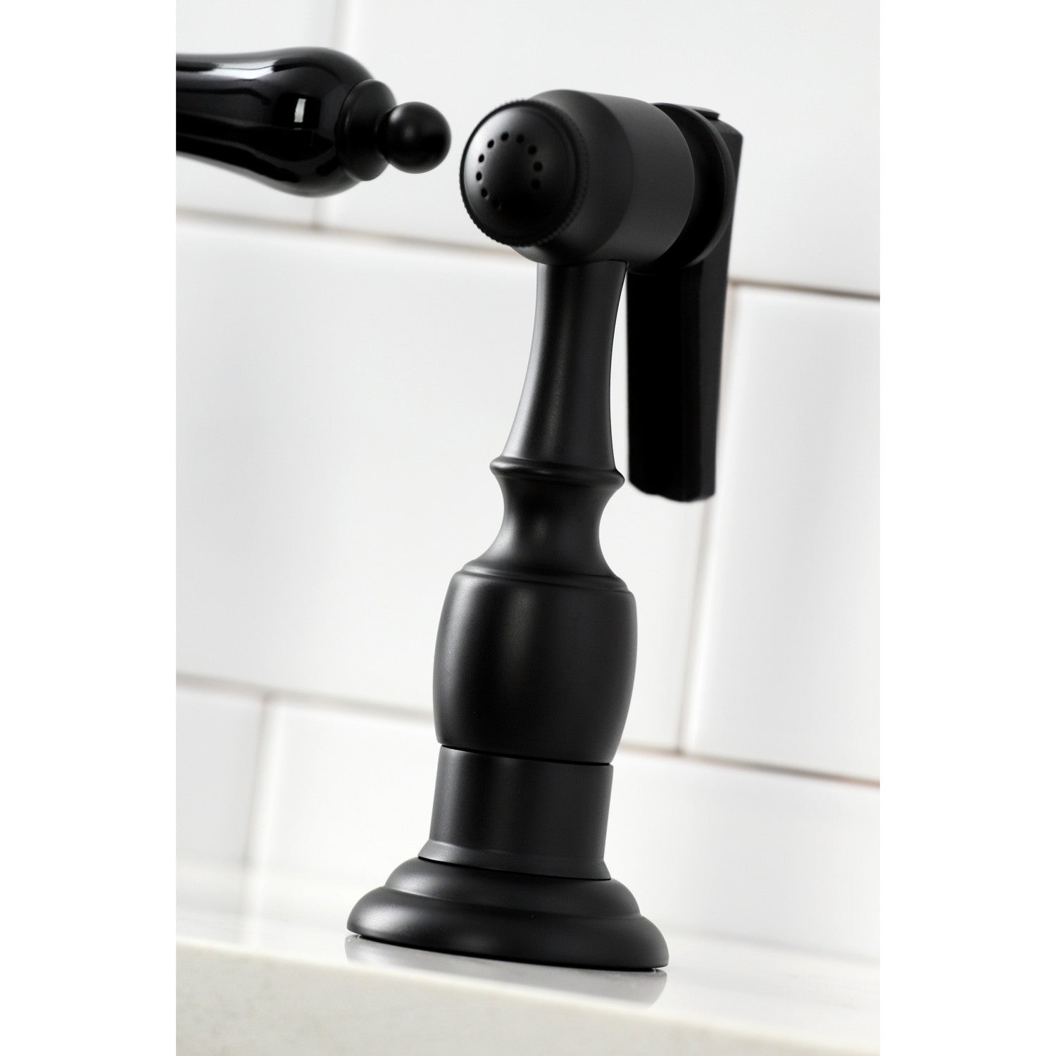 Kingston Brass KS3270PKLBS Duchess Bridge Kitchen Faucet with Brass Sprayer, Matte Black