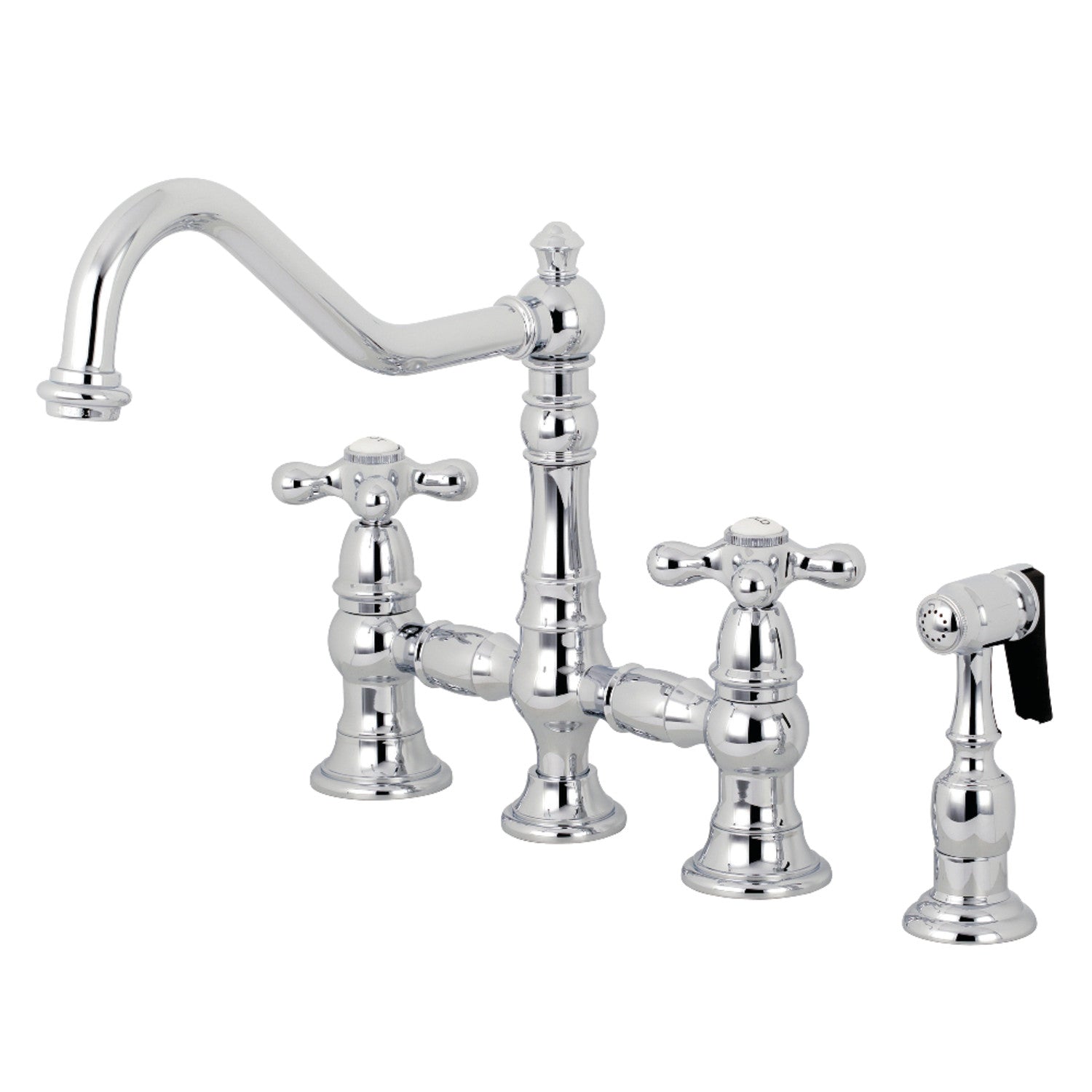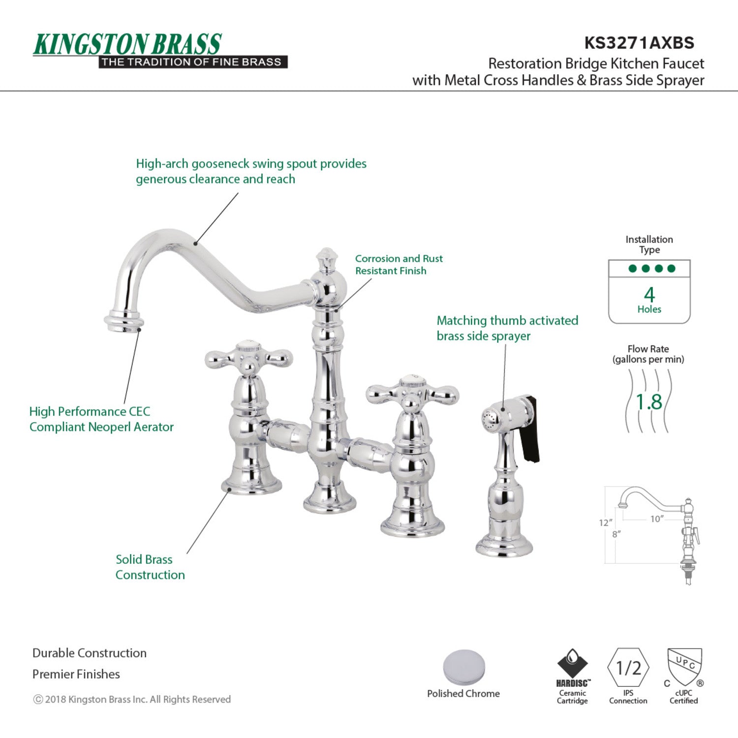 Kingston Brass KS3271AXBS Restoration 8" Bridge Kitchen Faucet with Sprayer, Polished Chrome