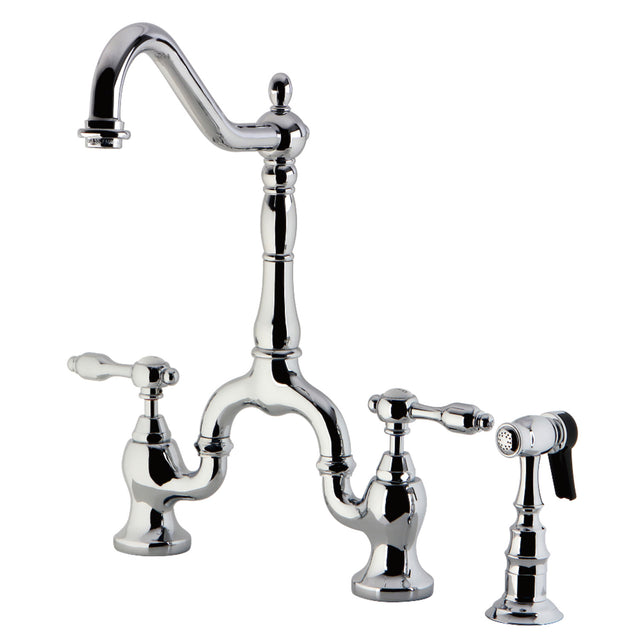 Kingston Brass KS7751TALBS Tudor Bridge Kitchen Faucet with Brass Sprayer, Polished Chrome