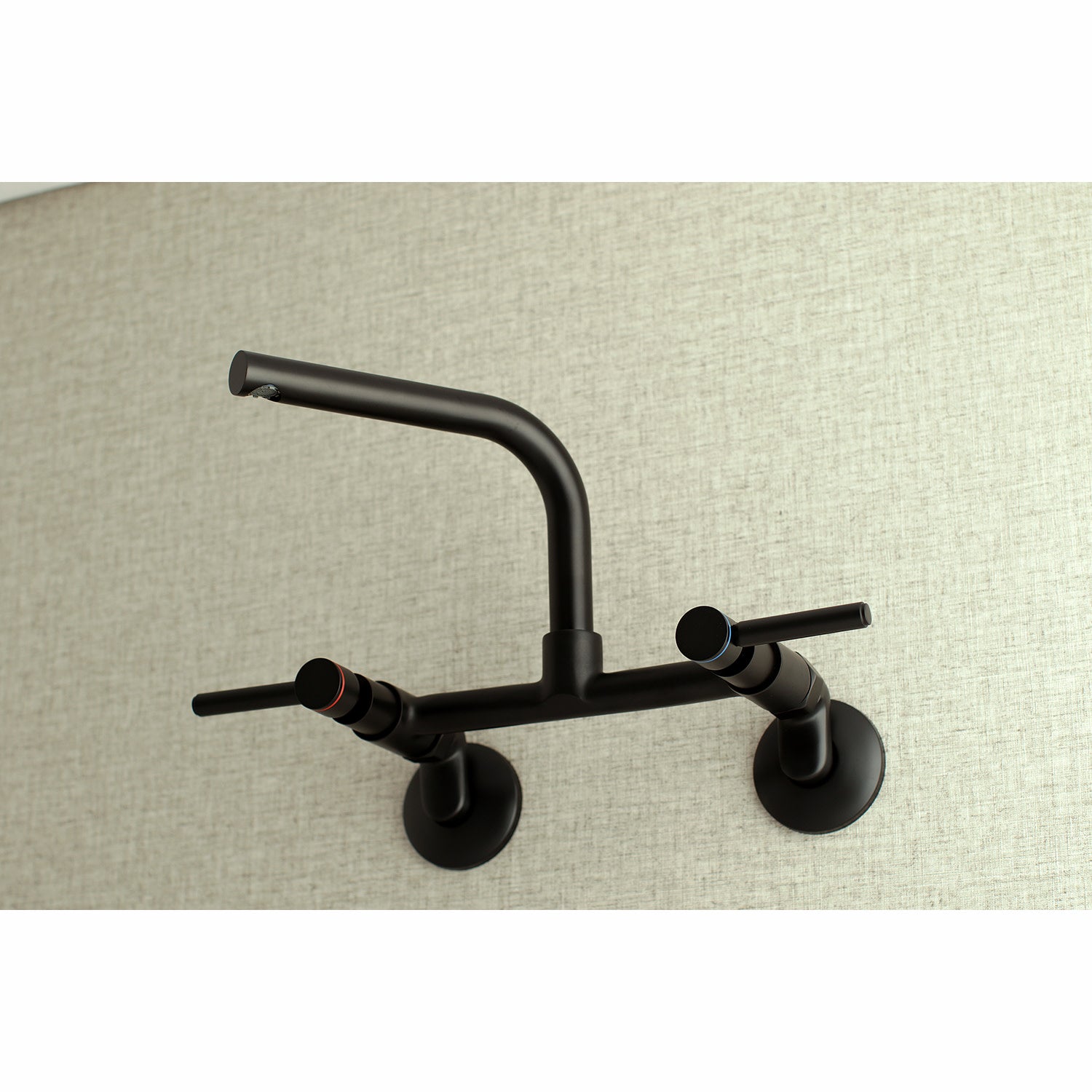 Kingston Brass Concord 8-Inch Adjustable Center Wall Mount Kitchen Faucet, Matte Black