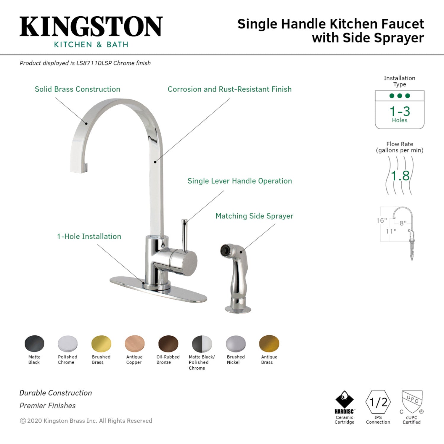 Gourmetier LS8715DLSP Concord Single-Handle Kitchen Faucet with Side Sprayer, Oil Rubbed Bronze