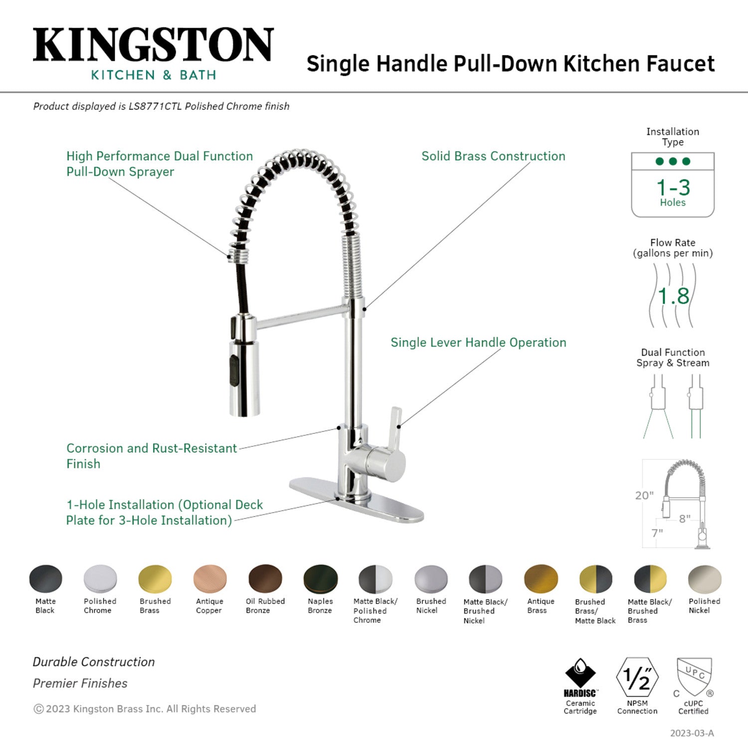Gourmetier LS8778CTL Continental Single-Handle Pre-Rinse Kitchen Faucet, Brushed Nickel