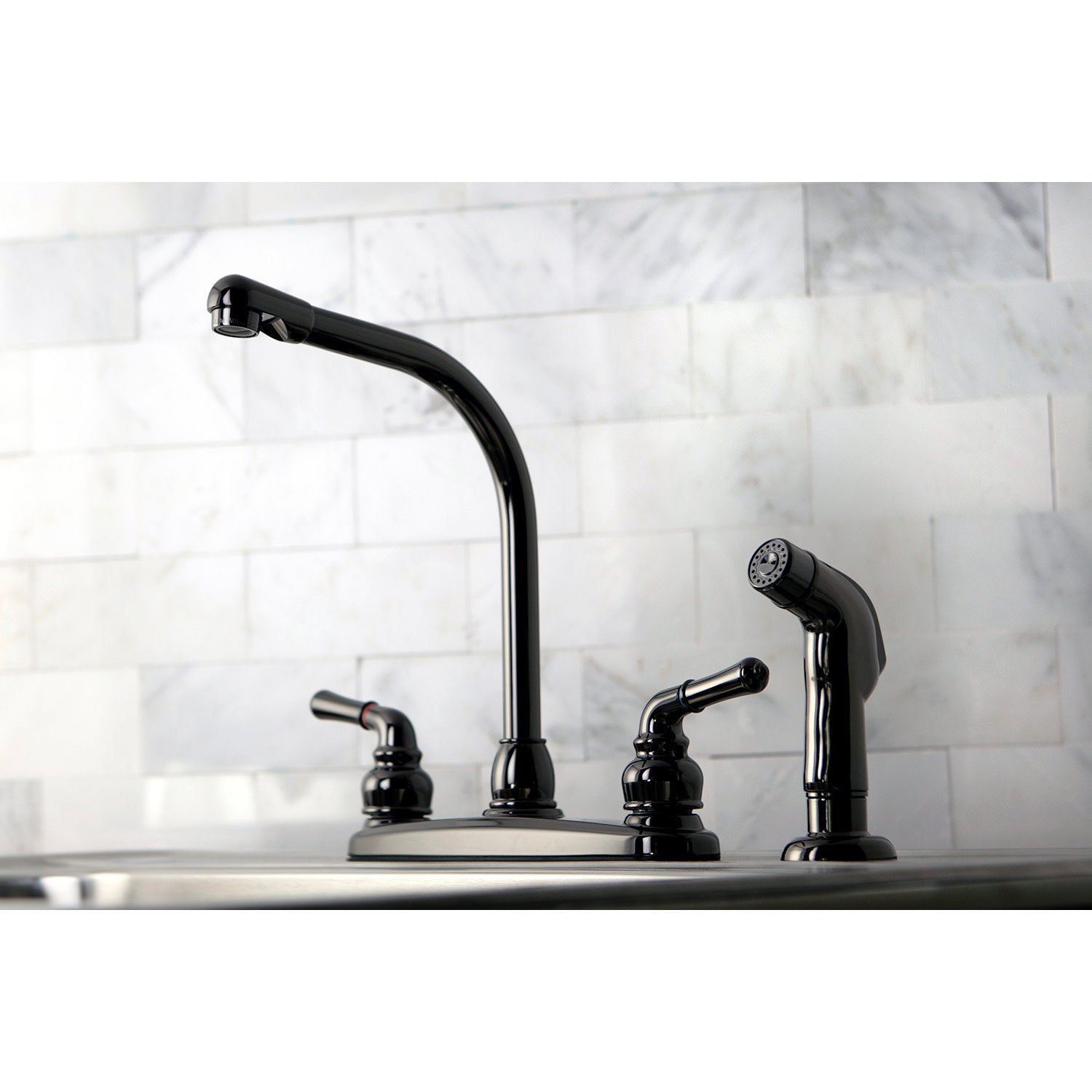 Kingston Brass NB750SP Water Onyx Centerset Kitchen Faucet, Black Stainless Steel