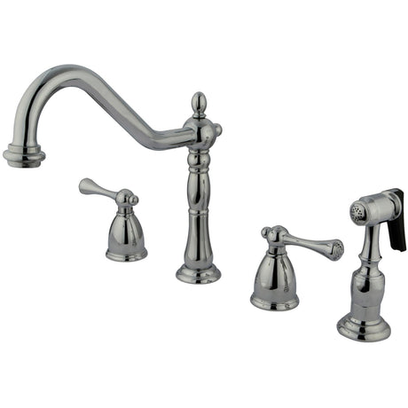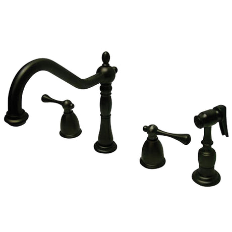 English Country KB7791BLBS Two-Handle 4-Hole Deck Mount Widespread Kitchen Fa...