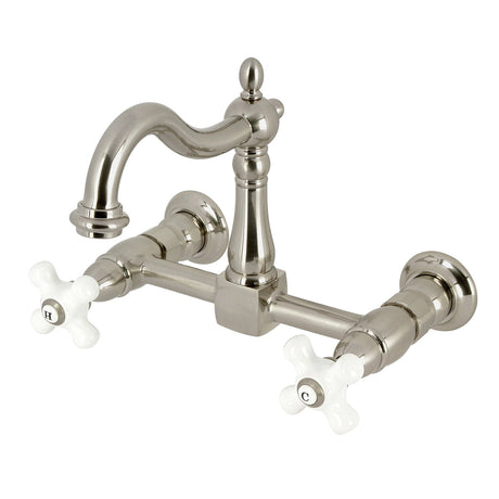 Heritage KS1268PX Two-Handle 2-Hole Wall Mount Kitchen Faucet, Brushed Nickel