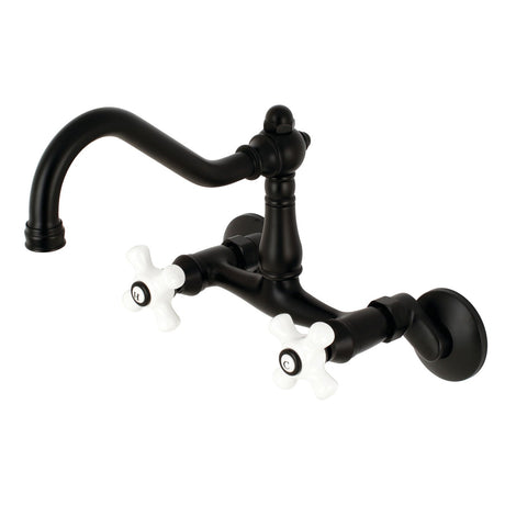 Kingston KS613MB Two-Handle 2-Hole Wall Mount Kitchen Faucet, Matte Black
