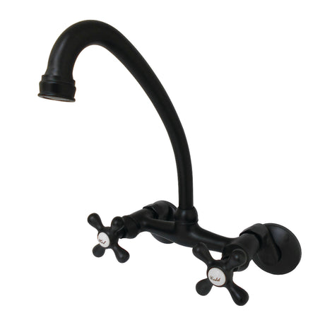 Kingston Brass KS213MB Kingston Two Handle Wall Mount Kitchen Faucet, Matte B...