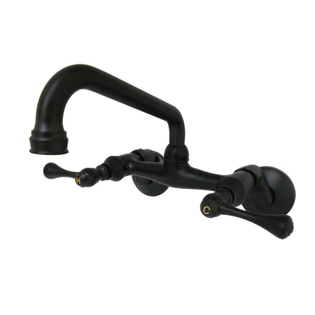 Kingston Brass KS613MB Kingston Two Handle Wall Mount Kitchen Faucet, Matte B...