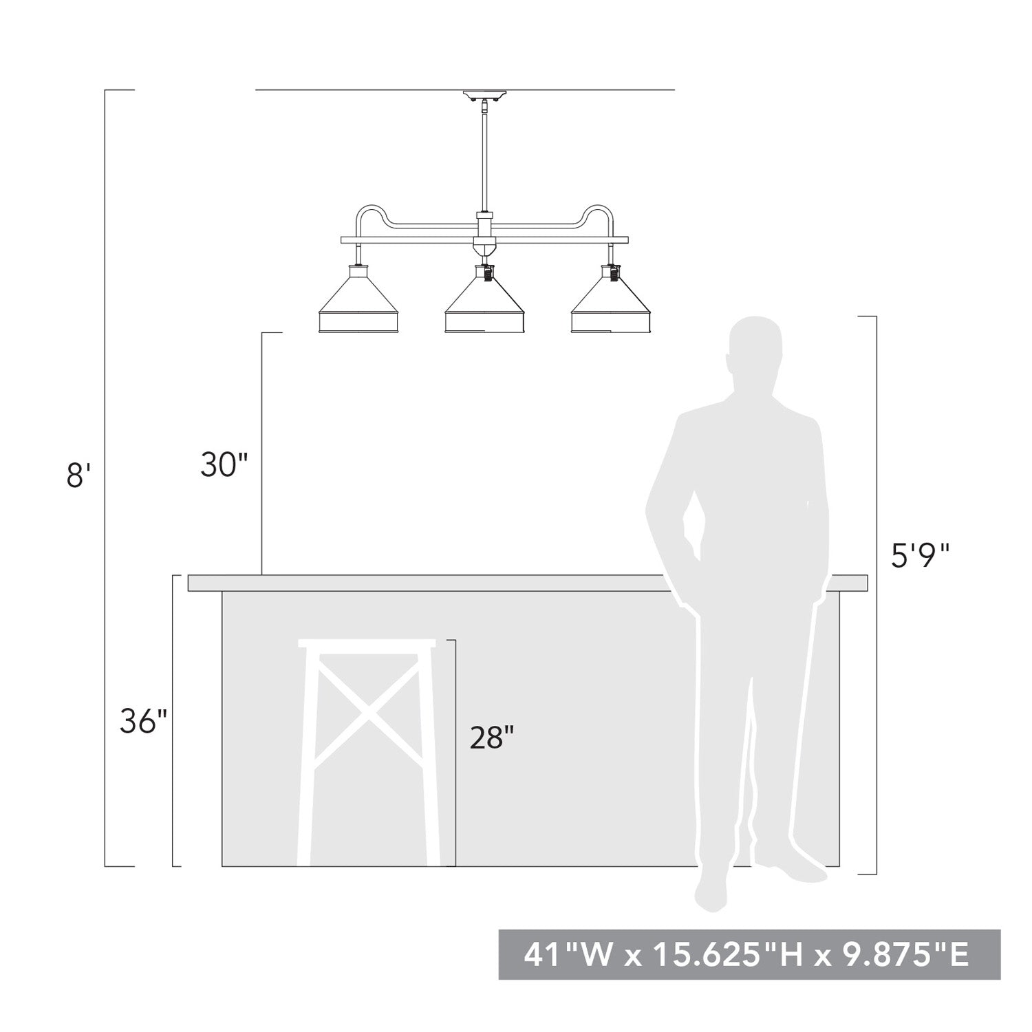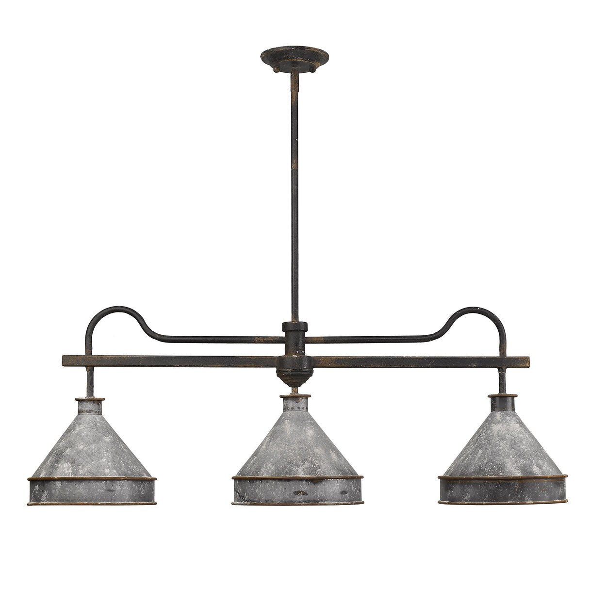 Perfect for homes with relaxed farmhouse décor, Jasper has the comforting look of the olden days. The Galvanized Steel shades and contrasting, weathered Antique Black Iron finish call to mind humble homesteaders and rural living. Hang this fixture over an island or kitchen table for that touch of casual, vintage flare that you've been seeking.