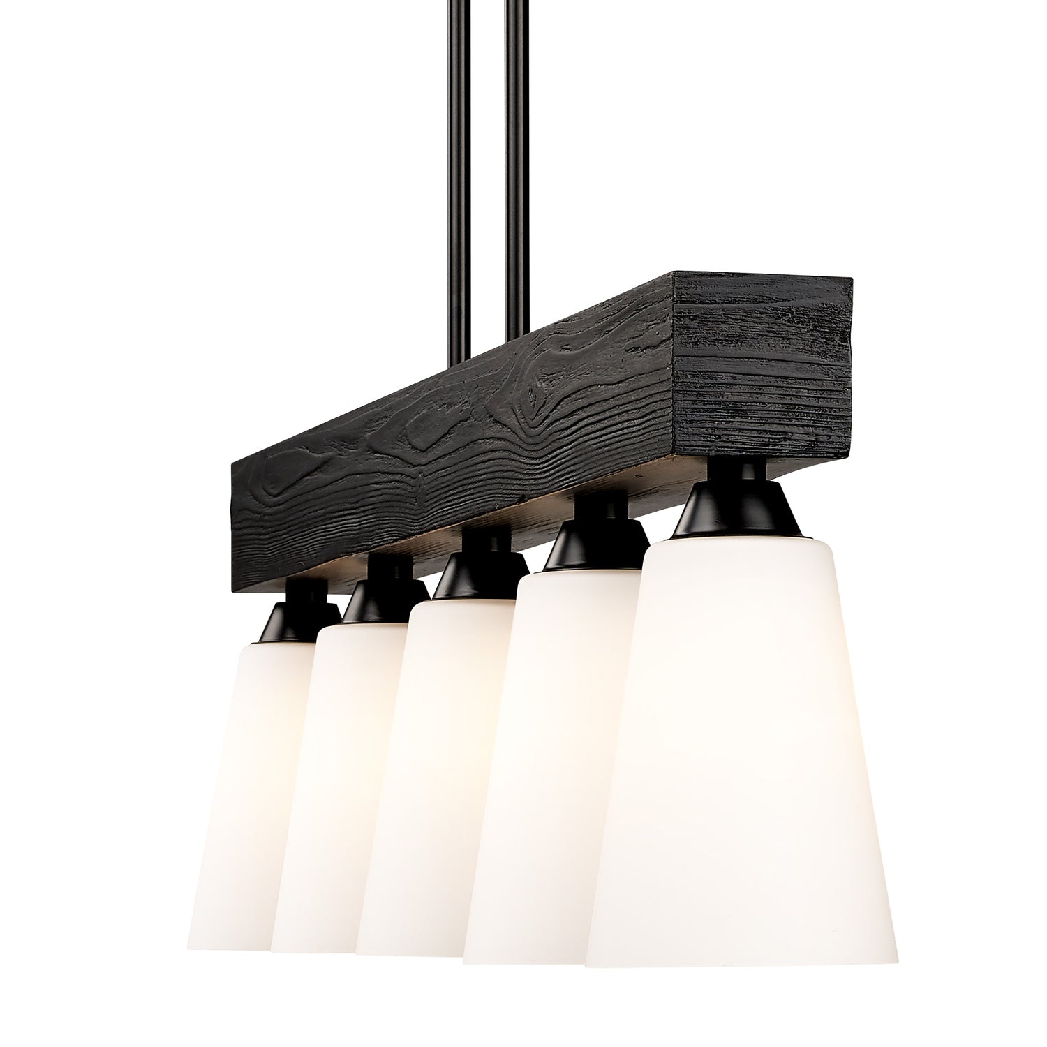 Neela Linear Pendant in Matte Black with Opal Glass Shade