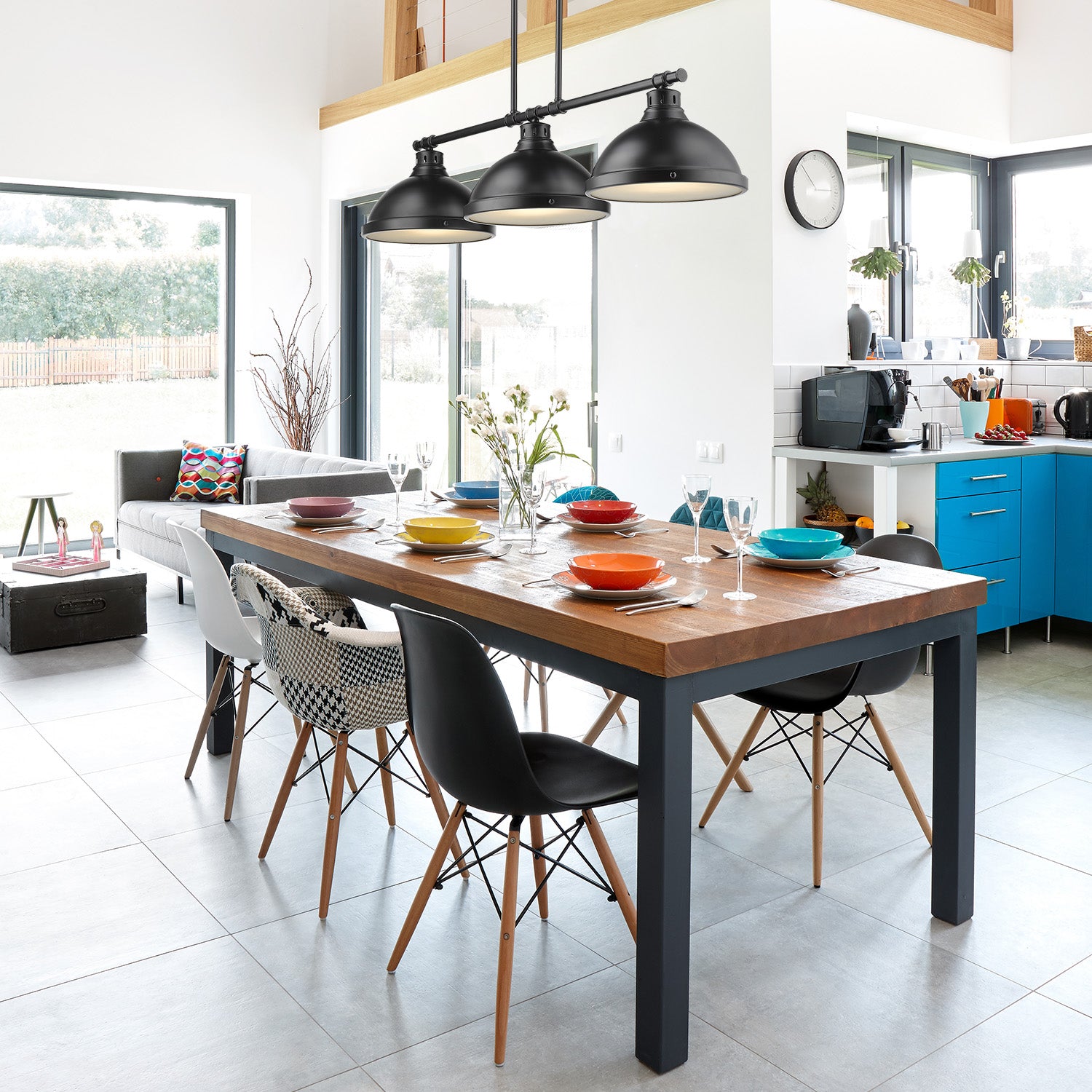 Duncan 3 Light Linear Pendant in Black with a Matte Black Shades