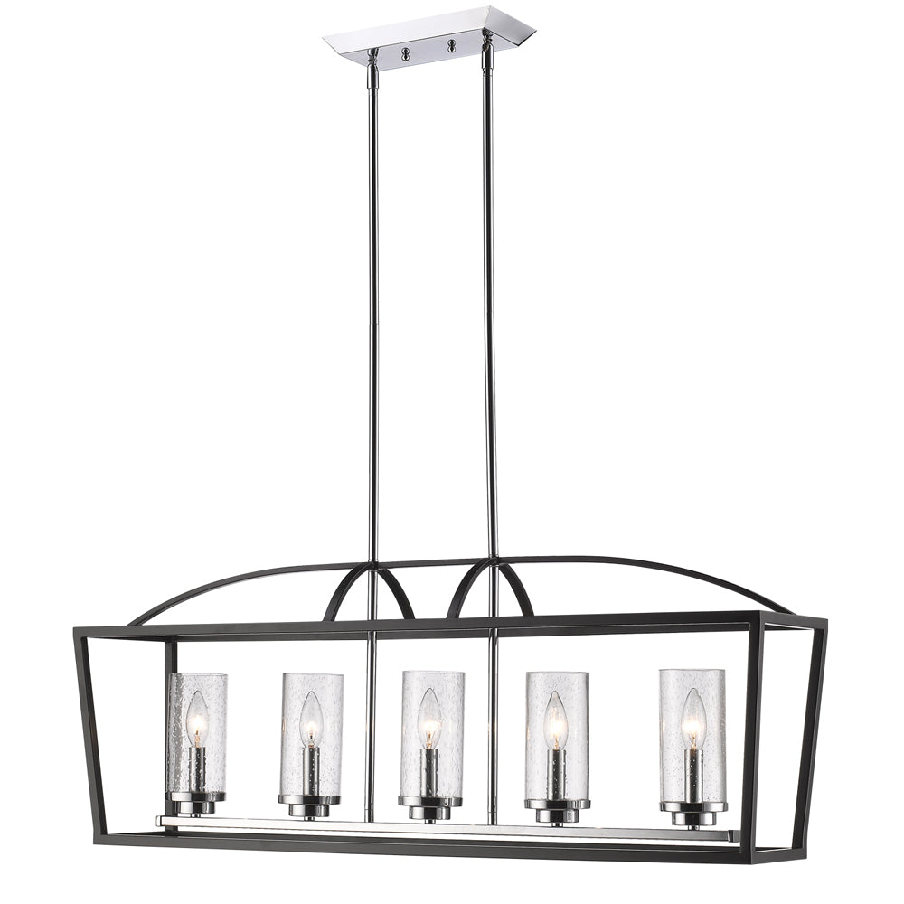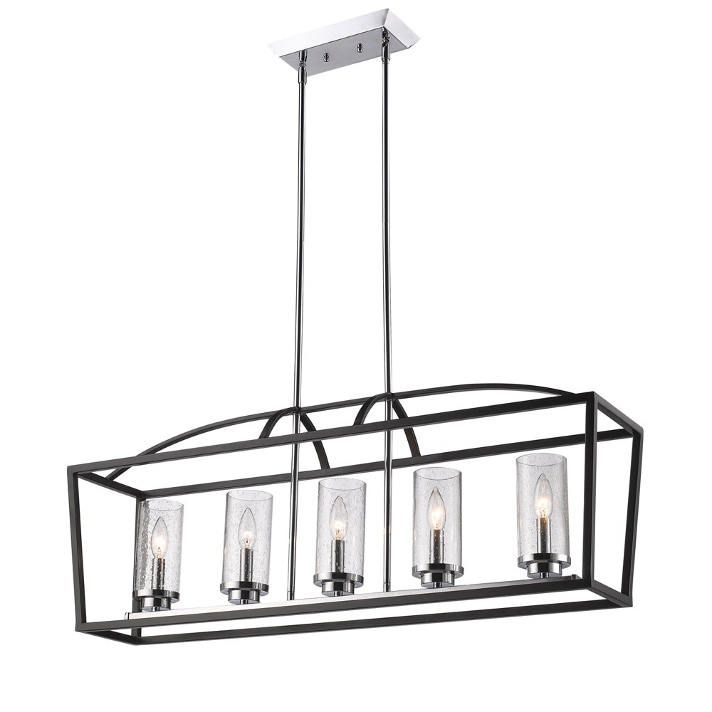 Mercer 5 Light Linear Pendant in Matte Black with Chrome accents and Seeded Glass