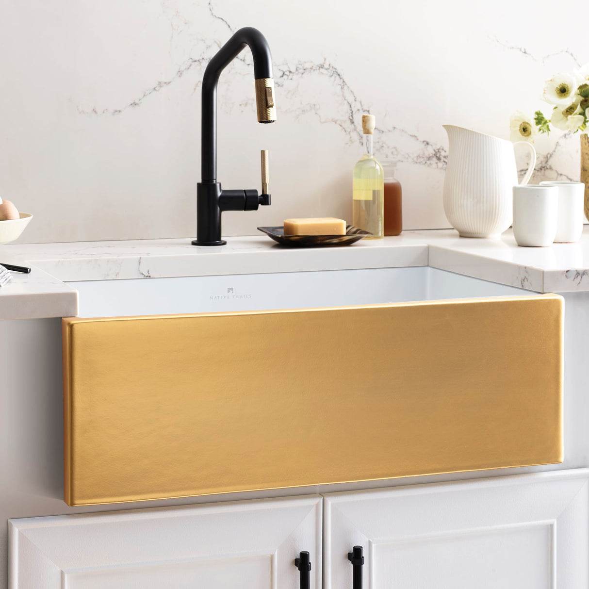 We couldn’t have dreamed up a more enticing kitchen sink than Dreamer farmhouse sink. With its alluring precious metal apron, it will take your kitchen design to the heights of luxury. This beautiful fireclay sink, handcrafted in Italy, brings a dreamy elegance that is designed to endure the test of time. The Precious Metals Collection was inspired by Native Trails’ 25th “silver” anniversary in 2021.