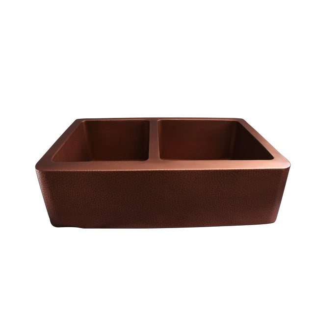 33" Perla Double Bowl Copper Apron-Front Sink