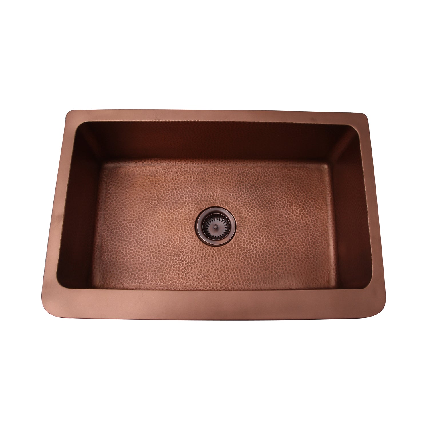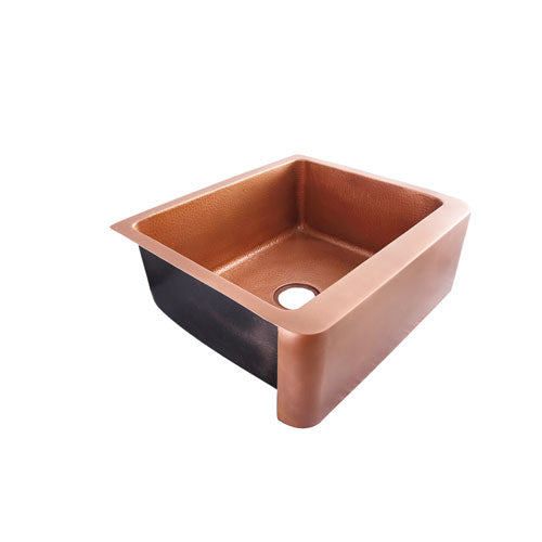 This stout and well-made apron-front sink is sure to meet and surpass all of your kitchen needs. Its smooth front and hammered interior give it aesthetic qualities. The weathered-antique copper finish will patina with time, giving it even more character and distinction.