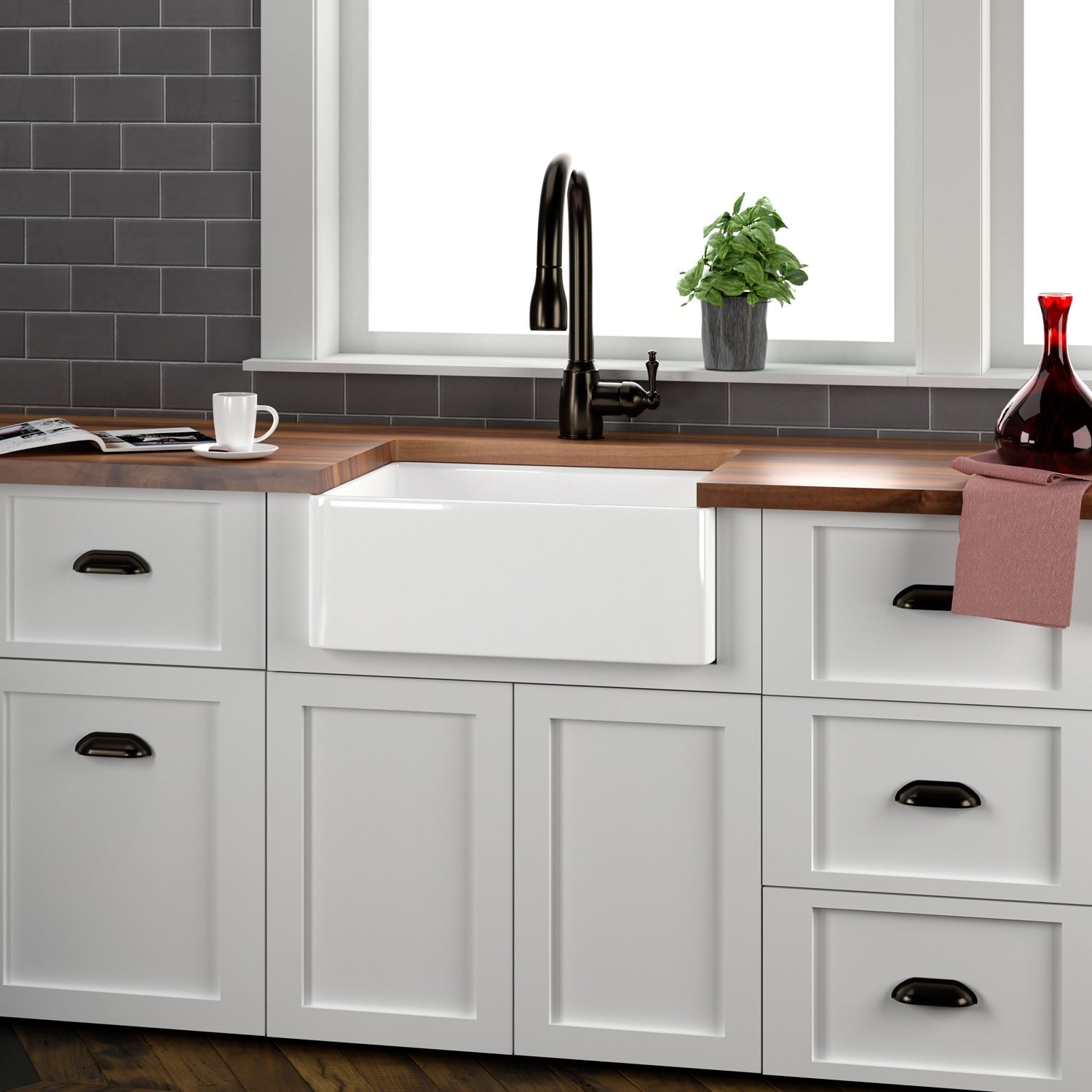 Bring a charming country look to your kitchen with our apron-front sink. Fine fire clay construction means durability and easy care.