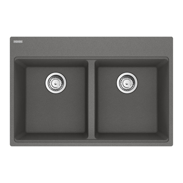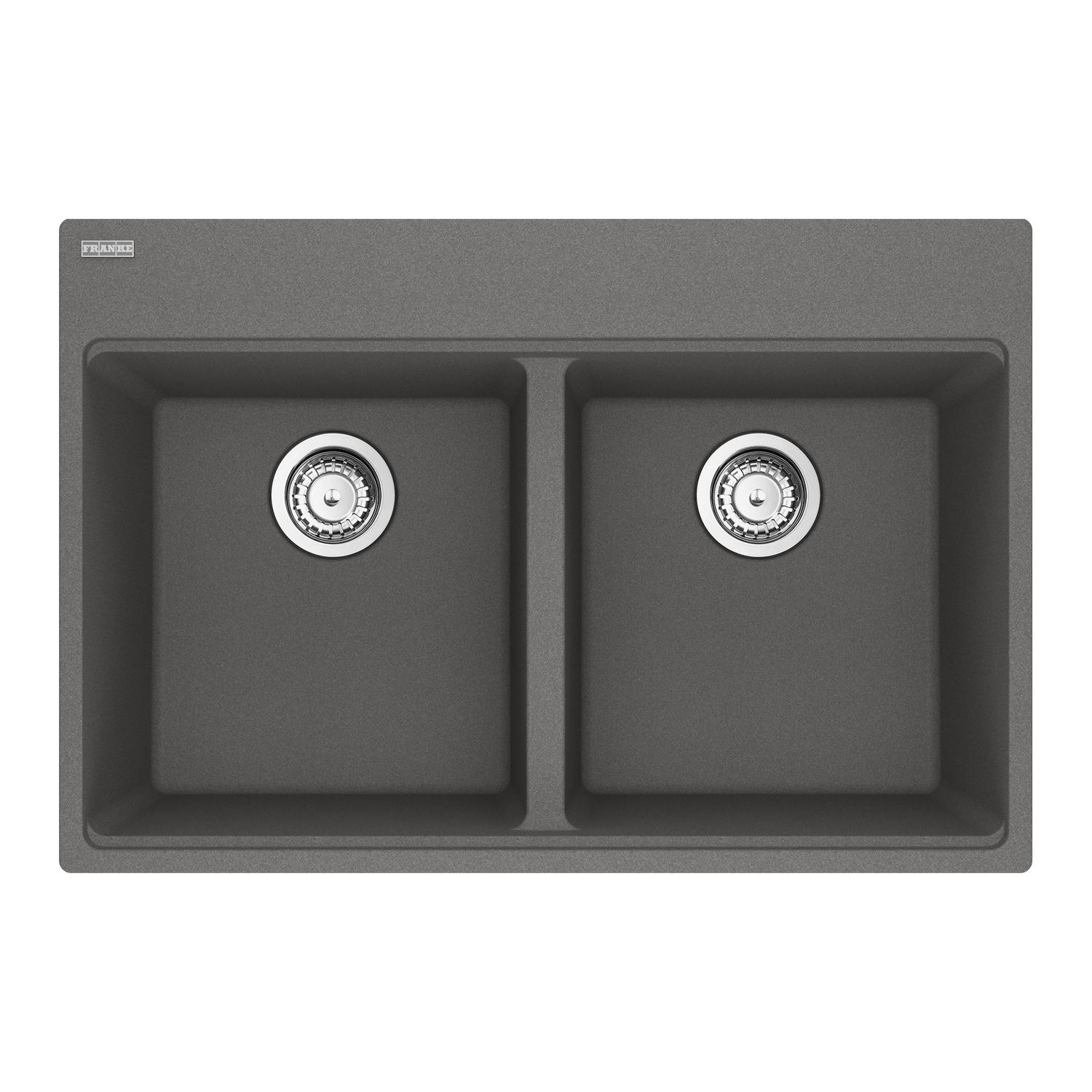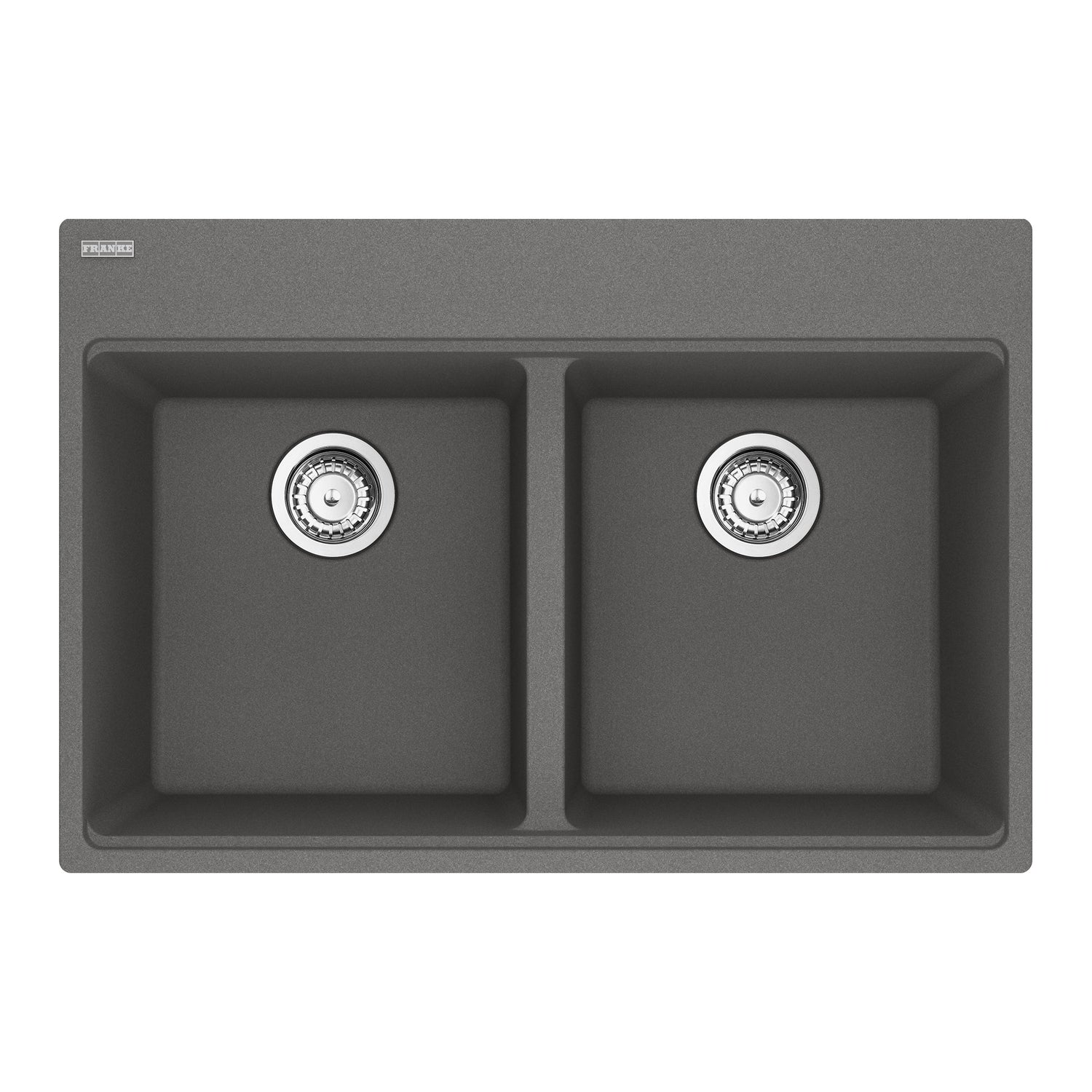FRANKE MAG6201414-SHG-S Maris Topmount 31-in x 20.88-in Granite Double Bowl Kitchen Sink in Stone Grey In Stone Grey