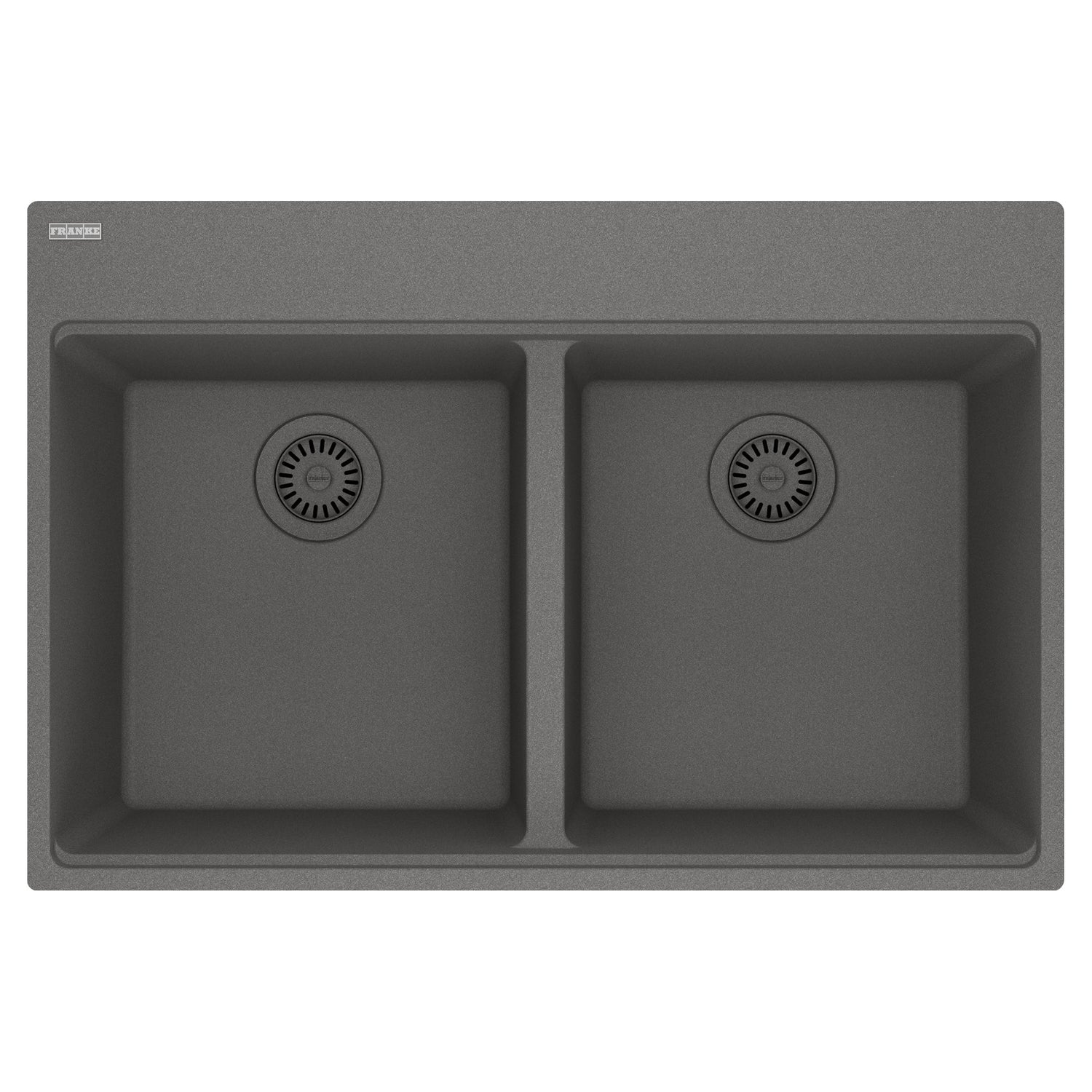 FRANKE MAG6201515-SHG Maris Topmount 33-in x 22-in Granite Double Bowl Kitchen Sink in Stone Grey In Stone Grey