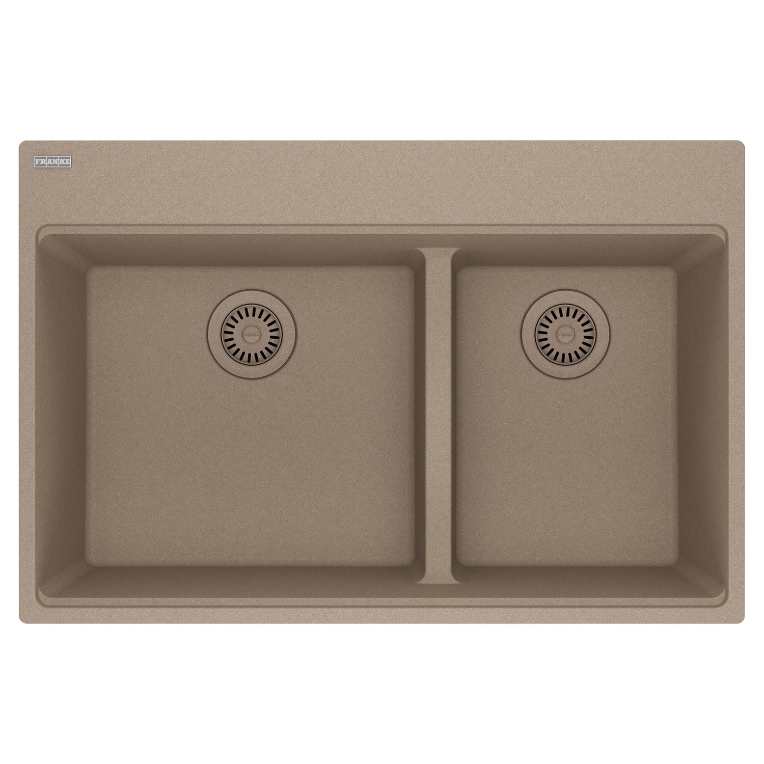 FRANKE MAG6601812LD-OYS Maris Topmount 33-in x 22-in Granite Double Bowl Kitchen Sink in Oyster In Oyster