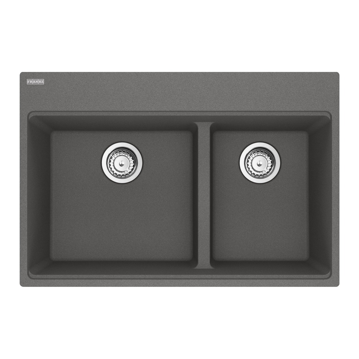 FRANKE MAG6601812LD-SHG-S Maris Topmount 33-in x 22-in Granite Double Bowl Kitchen Sink in Stone Grey In Stone Grey