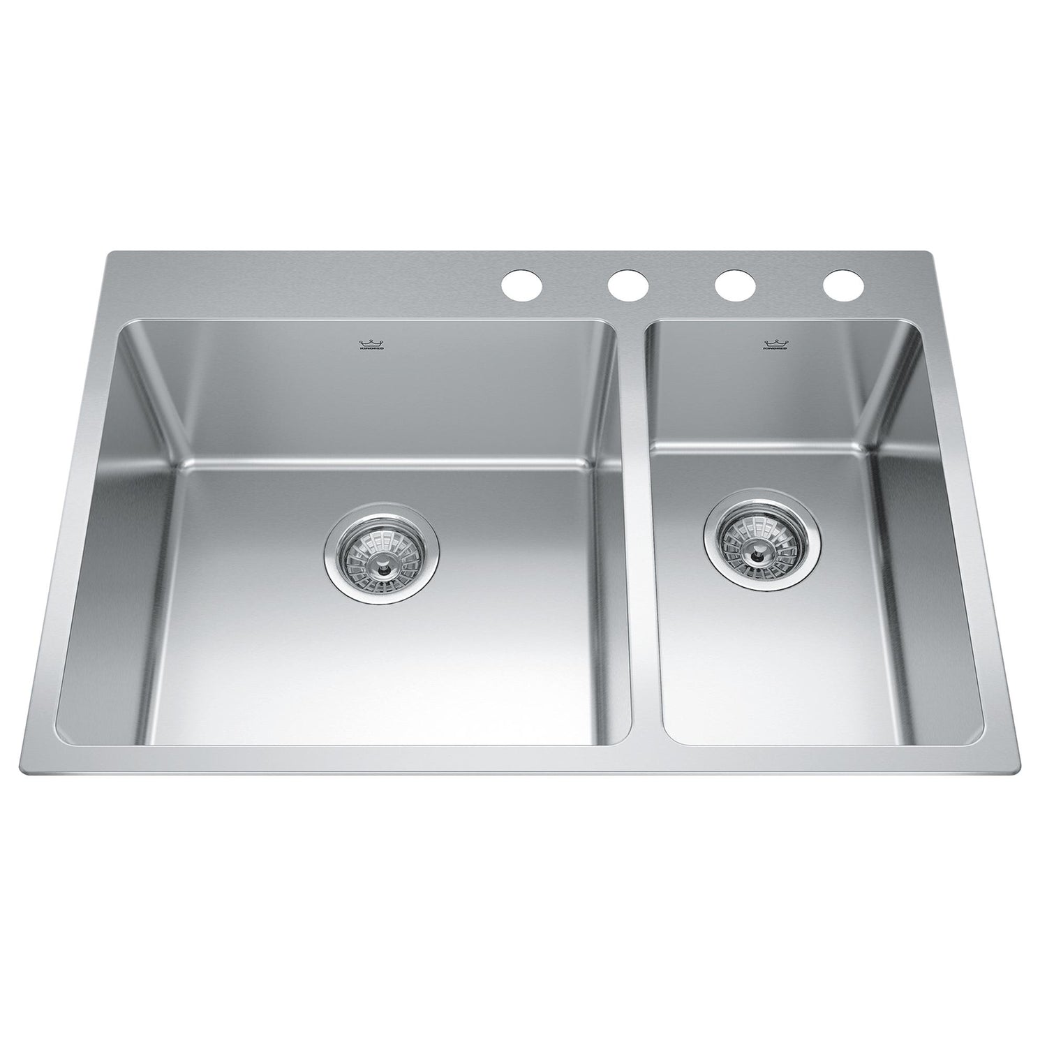 KINDRED BCL2131R-9-4N Brookmore 31-in LR x 20.9-in FB x 9-in DP Drop in Double Bowl Stainless Steel Sink In Commercial Satin Finish