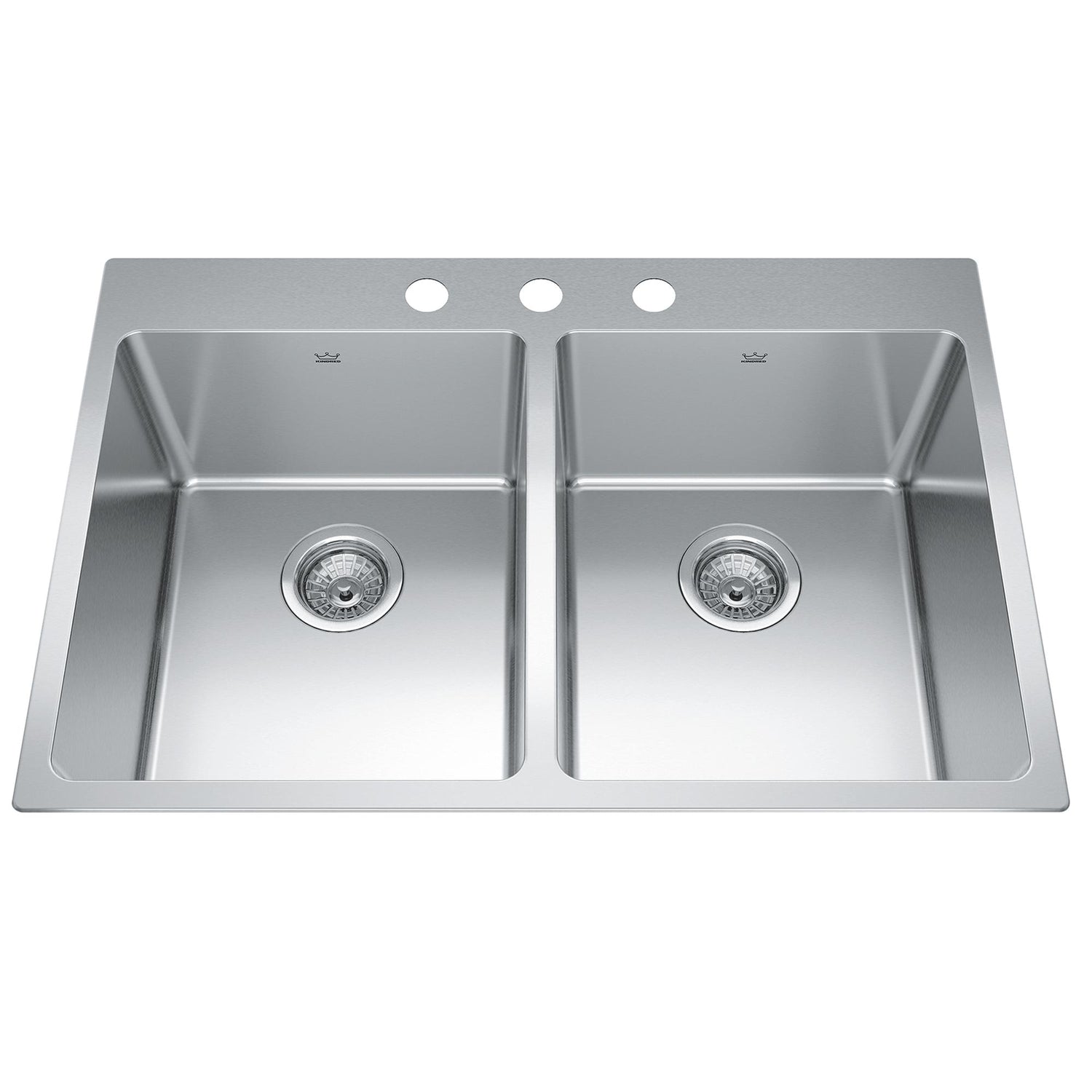 KINDRED BDL2131-9-3N Brookmore 31-in LR x 20.9-in FB x 9-in DP Drop in Double Bowl Stainless Steel Sink In Commercial Satin Finish
