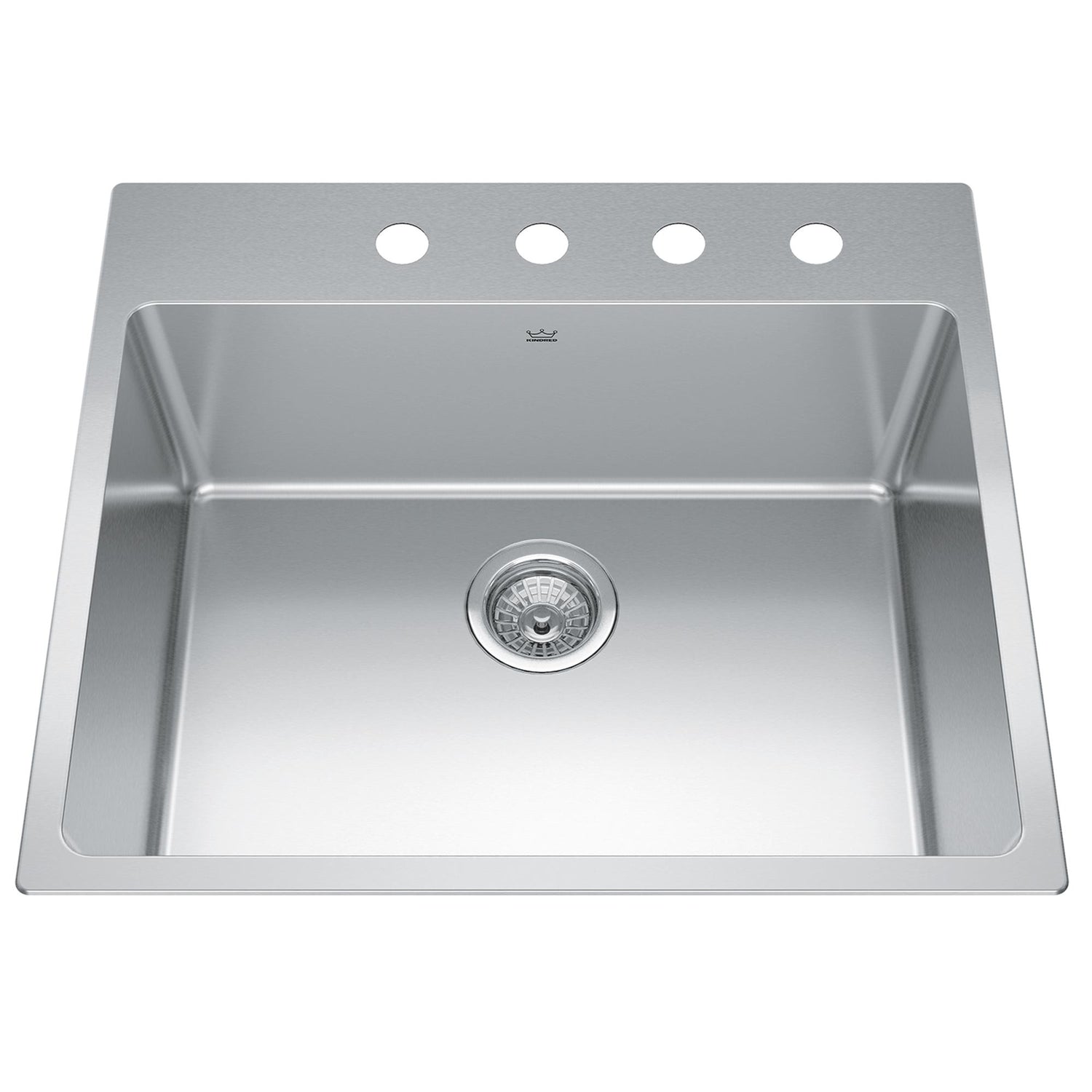 KINDRED BSL2225-9-4N Brookmore 25.1-in LR x 22.1-in FB x 9-in DP Drop in Single Bowl Stainless Steel Sink In Commercial Satin Finish