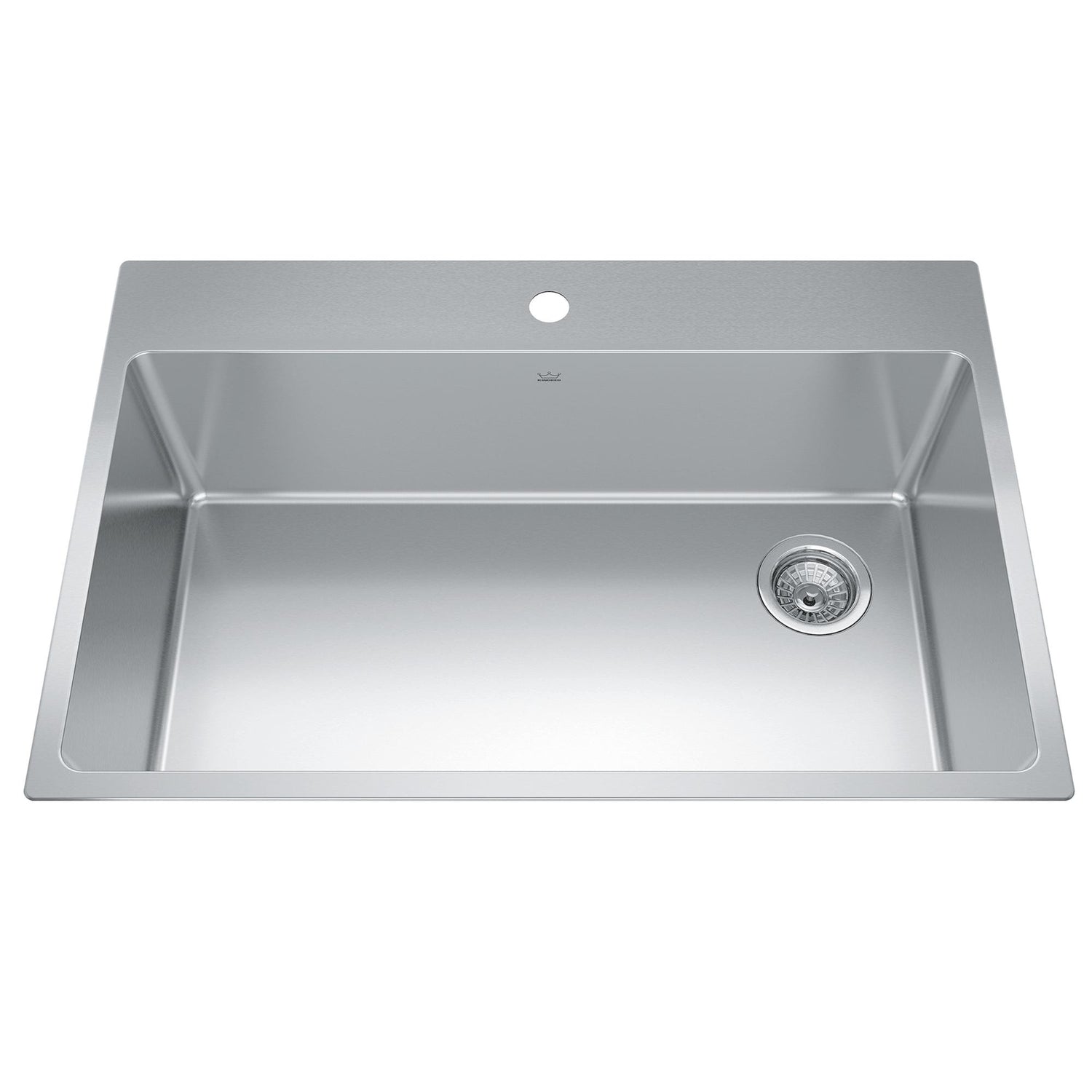 KINDRED BSL2233-9-1N-OW Brookmore 32.9-in LR x 22.1-in FB x 9-in DP Drop in Single Bowl Stainless Steel Sink In Commercial Satin Finish