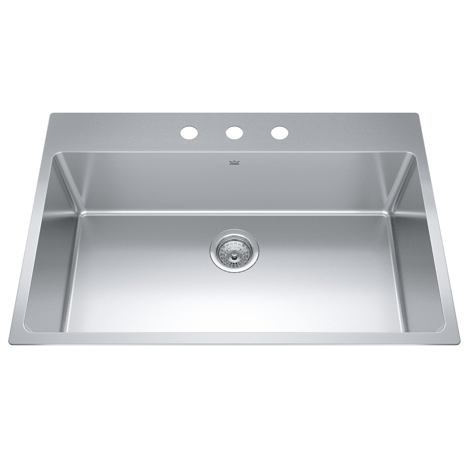 KINDRED BSL2233-9-3N Brookmore 32.9-in LR x 22.1-in FB x 9-in DP Drop in Single Bowl Stainless Steel Sink In Commercial Satin Finish