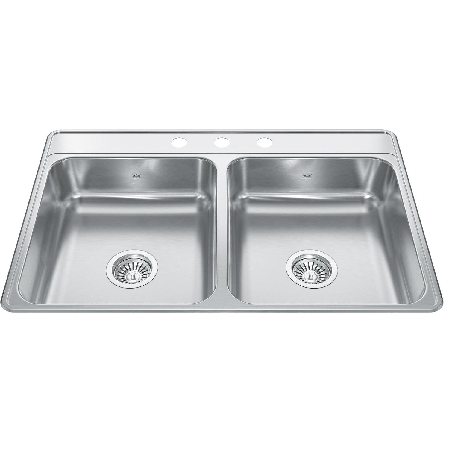KINDRED CDLA3322-6-3N Creemore 33-in LR x 22-in FB x 6-in DP Drop In Double Bowl 3-Hole Stainless Steel Sink In Commercial Satin Finish