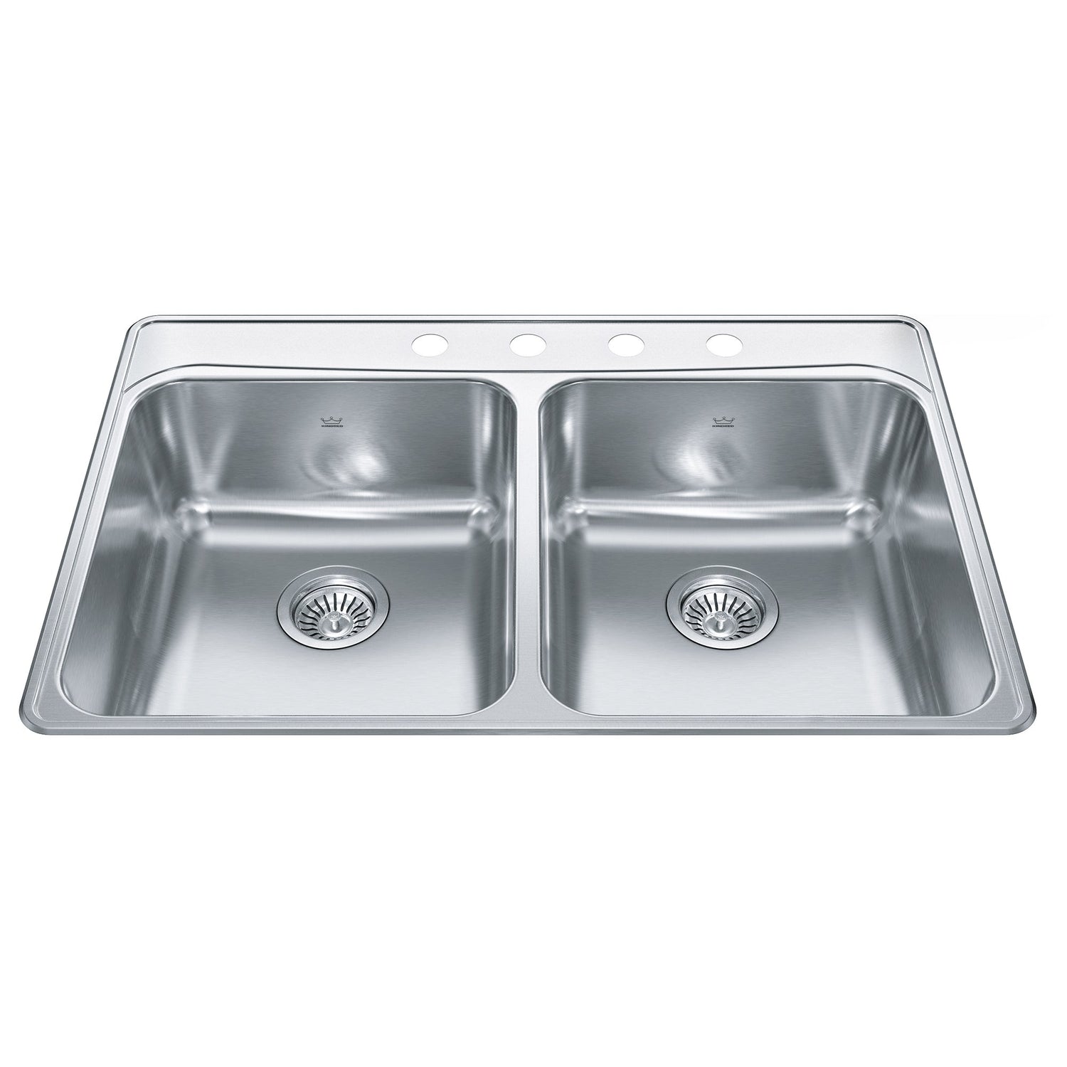 KINDRED FCDLA3322-8-3CBN Creemore 33-in LR x 22-in FB x 8-in DP Drop In Double Bowl 3-Hole Stainless Steel Kitchen Sink In Commercial Satin Finish