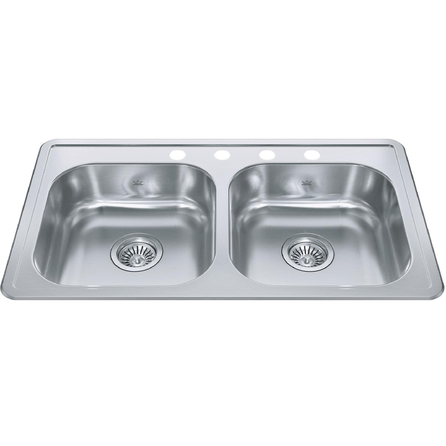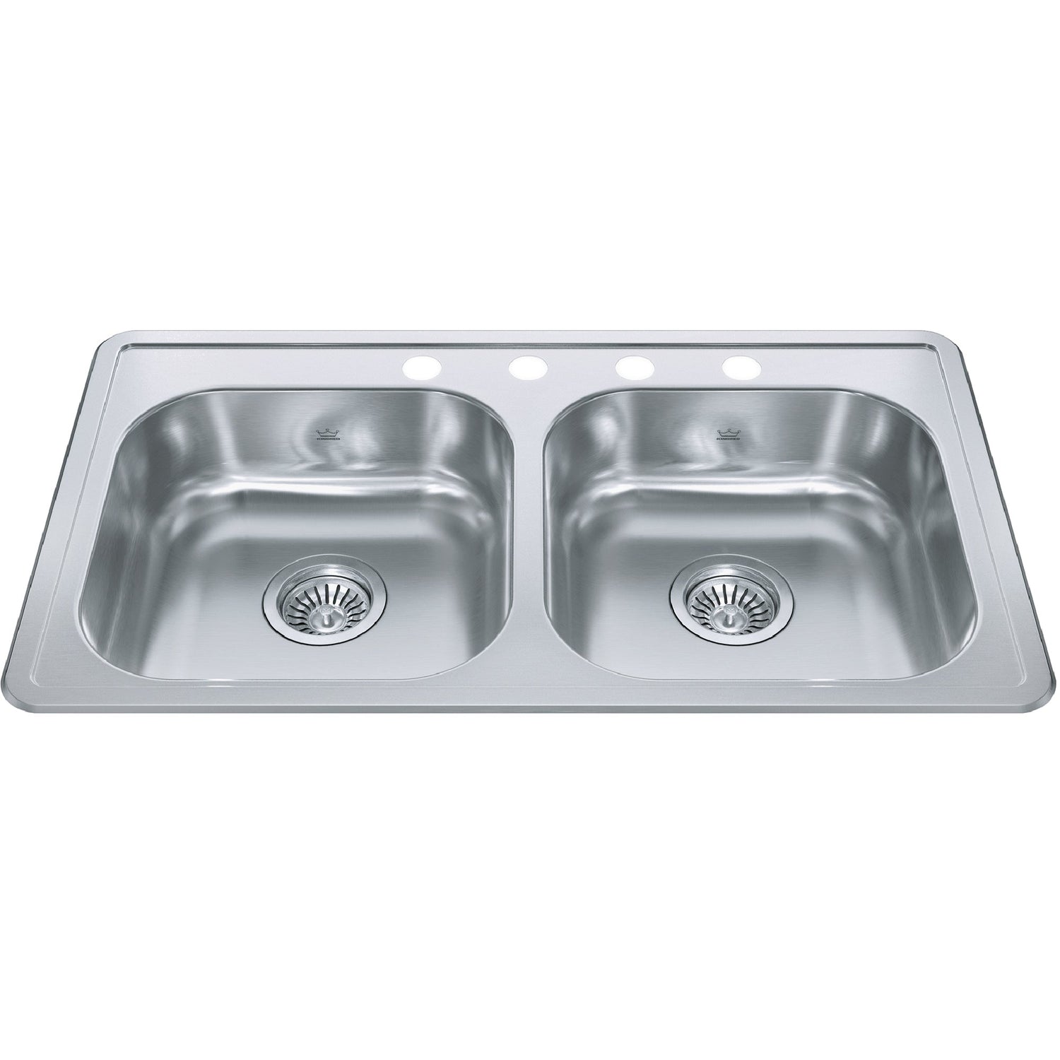 KINDRED RDLA3319-6-4CBN Creemore 32.94-in LR x 18.31-in FB x 6-in DP Drop In Double Bowl 4-Hole Stainless Steel Sink In Commercial Satin Finish